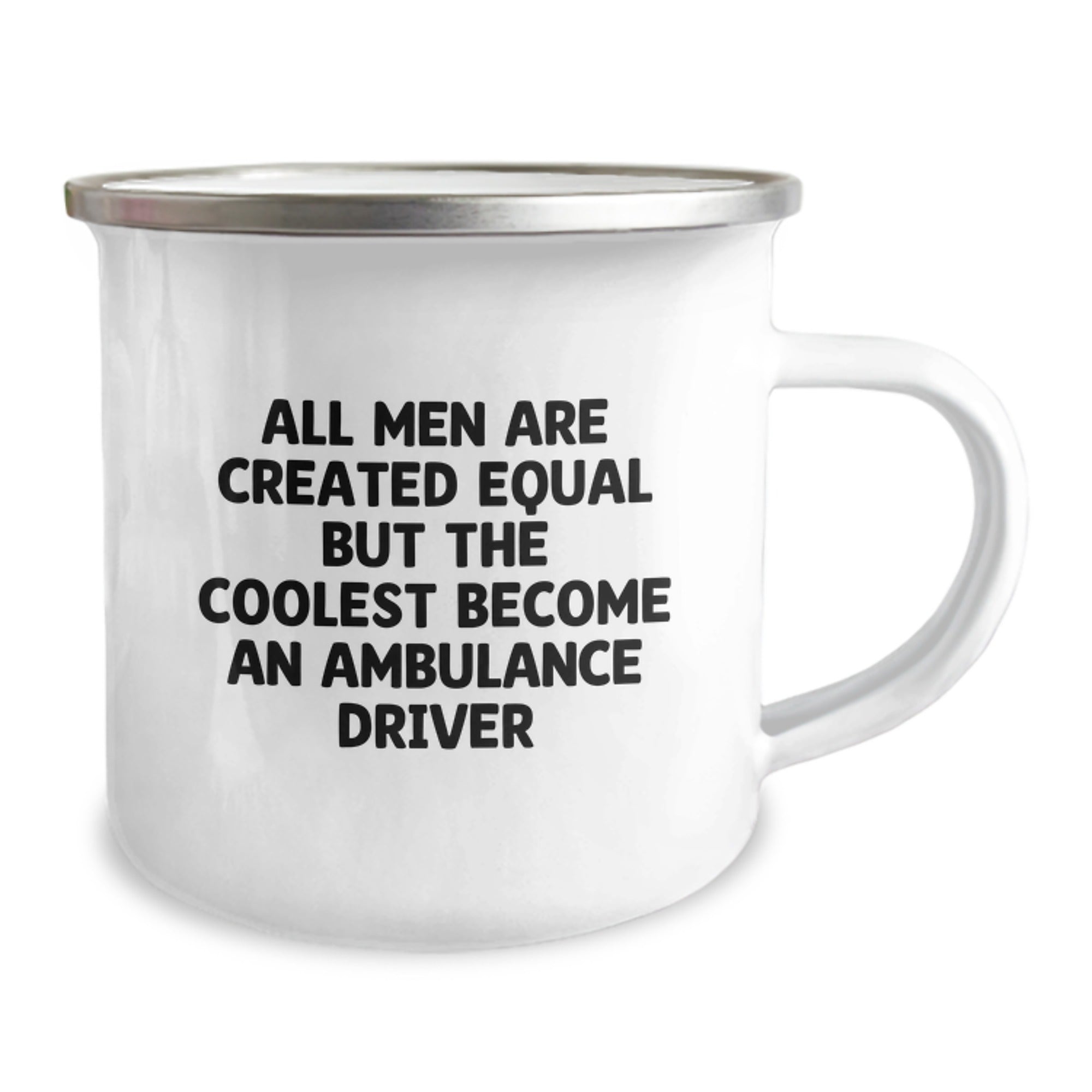 Are you a fan of the bravest, most daring profession out there? Do you admire the selflessness and quick thinking of an Ambulance Driver? Look no further than this awesome Christmas gift, featuring the bold quote 'All Men Are Created Equal But The Coolest Become An Ambulance Driver' on a sturdy stainless steel Camping Mug.