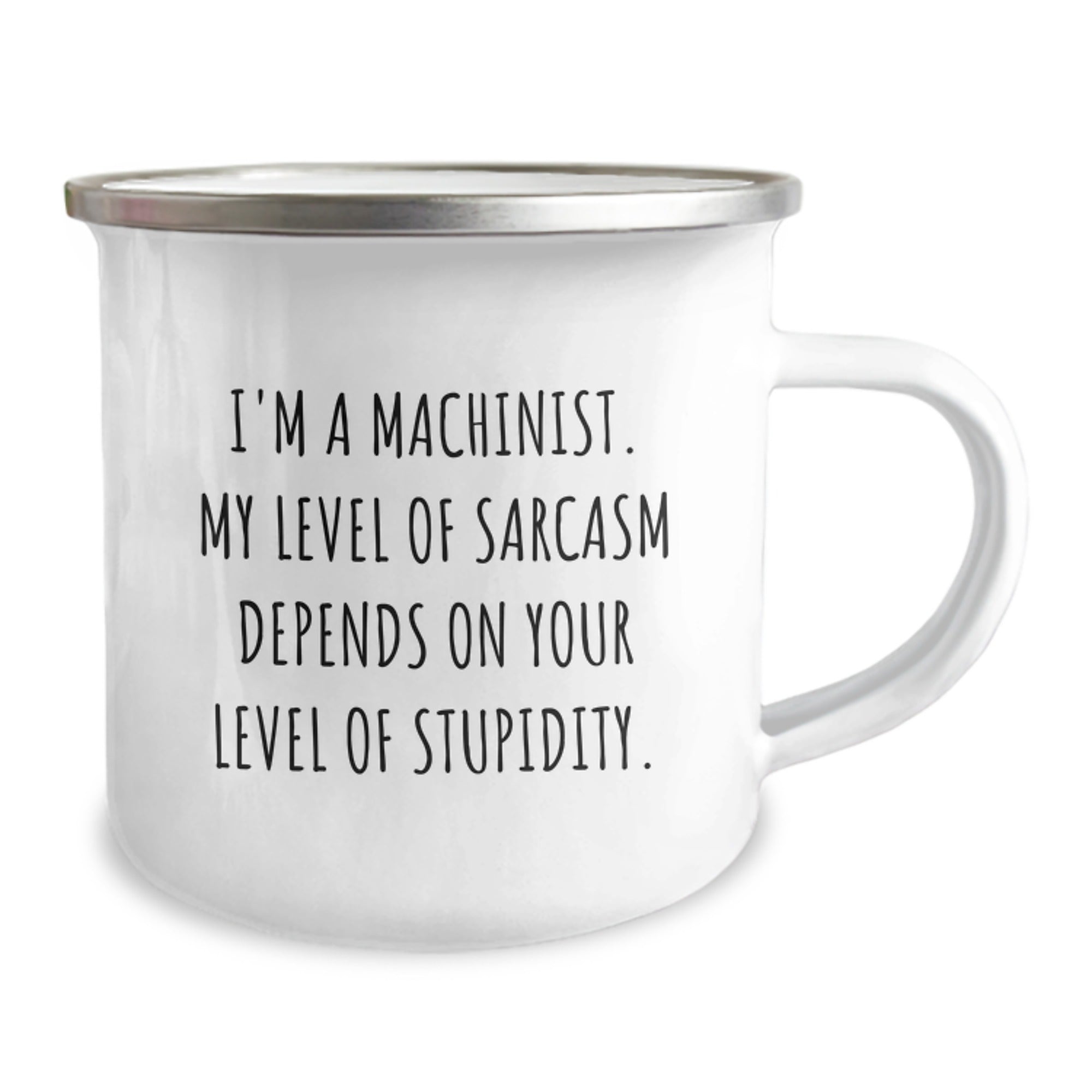 This funny machinist gifts for Valentine's unique camping mug is a great way to show your love and appreciation for the machinist in your life. The sarcastic quote 'I'm A Machinist. My Level Of Sarcasm Depends On Your Level Of Stupidity.' is sure to bring a smile to their face. Made from stainless steel with an enamel finish, this camping mug is both functional and sturdy.