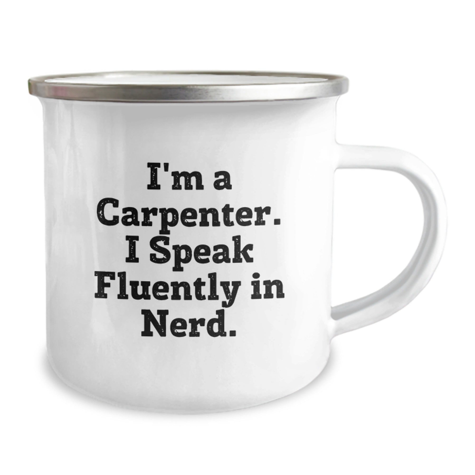 Get your 'I'm A Carpenter. I Speak Fluently In genius.' Camping Mug today and make this Christmas one to remember for the special Carpenter in your life. It's a gift that will bring a smile to their face and a touch of humor to their daily routine. Don't miss out and show your loved one how much you care!