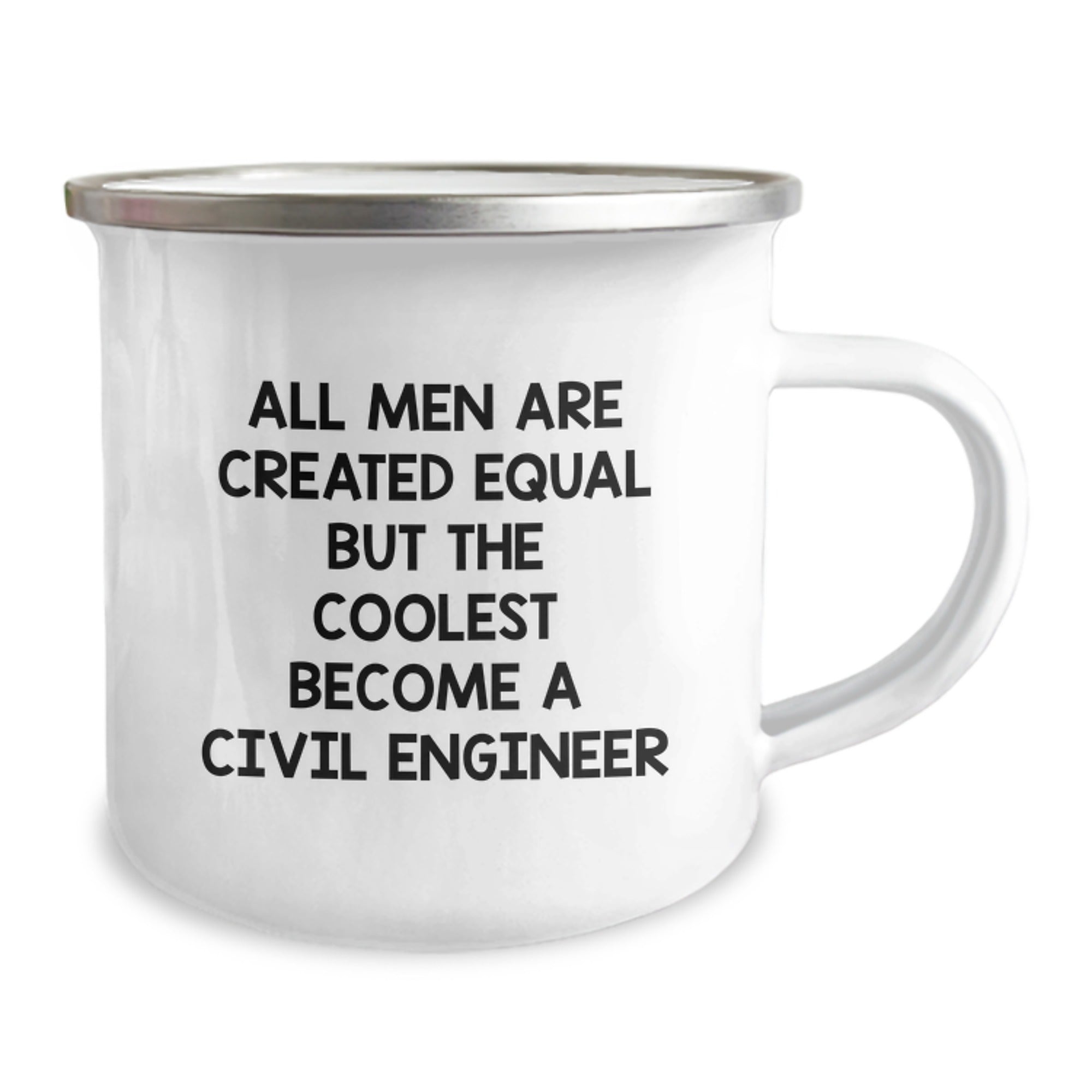 Are you looking for a unique gift for the civil engineer in your life? Or perhaps you're a civil engineer yourself and want to celebrate your profession with a fun and functional camping mug? Look no further! This funny quote 'All Men Are Created Equal But The Coolest Become A Civil Engineer' is perfect for any civil engineer enthusiast. It's a great way to add some humor and personality to your daily coffee routine, whether you're hiking in the great outdoors or just need a boost at the office.