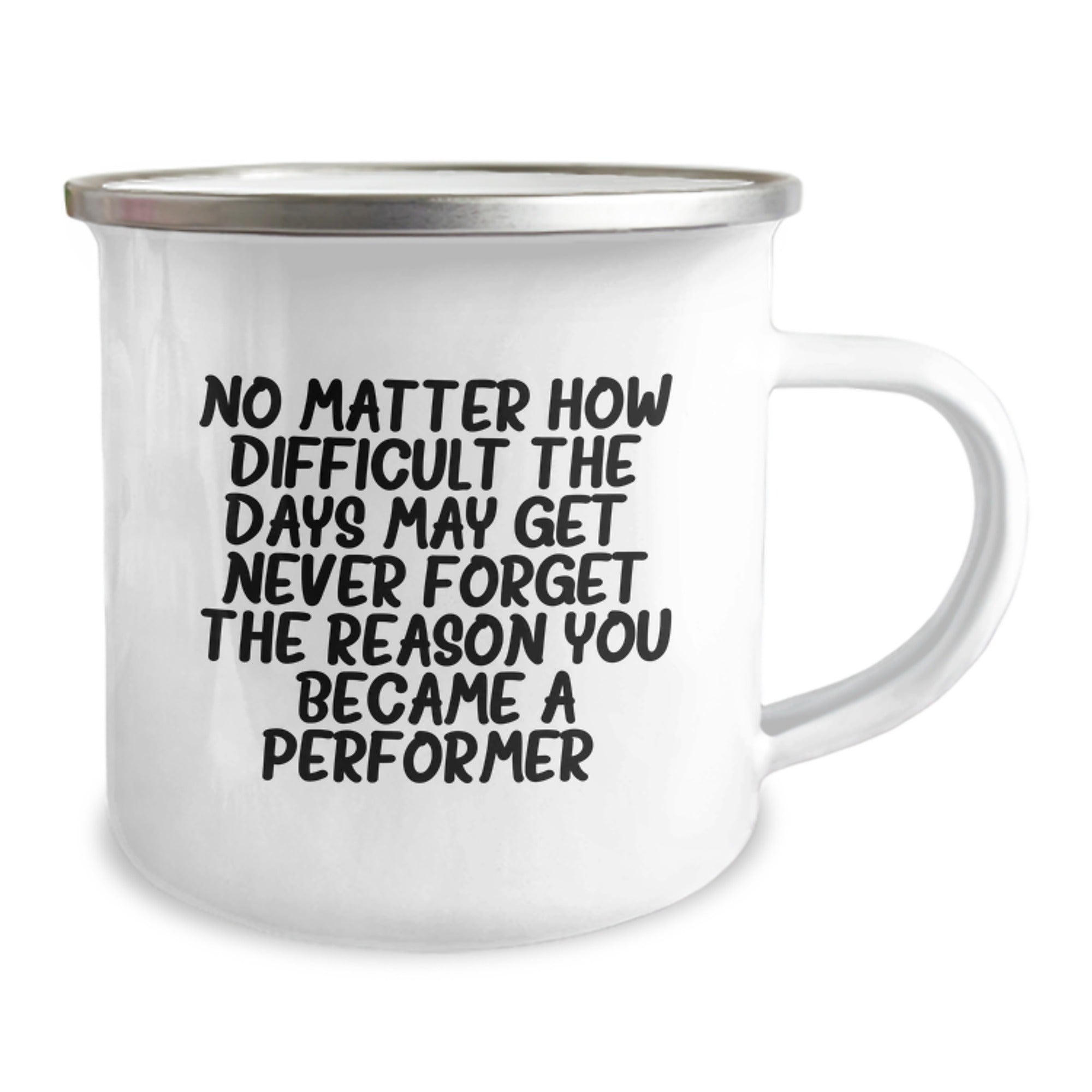 Funny Inspirational Gifts from Friends for Performer Valentine's Unique Camping Mug with 'No Matter How Difficult The Days May Get. Never Forget The Reason You Became A Performer.' Quote