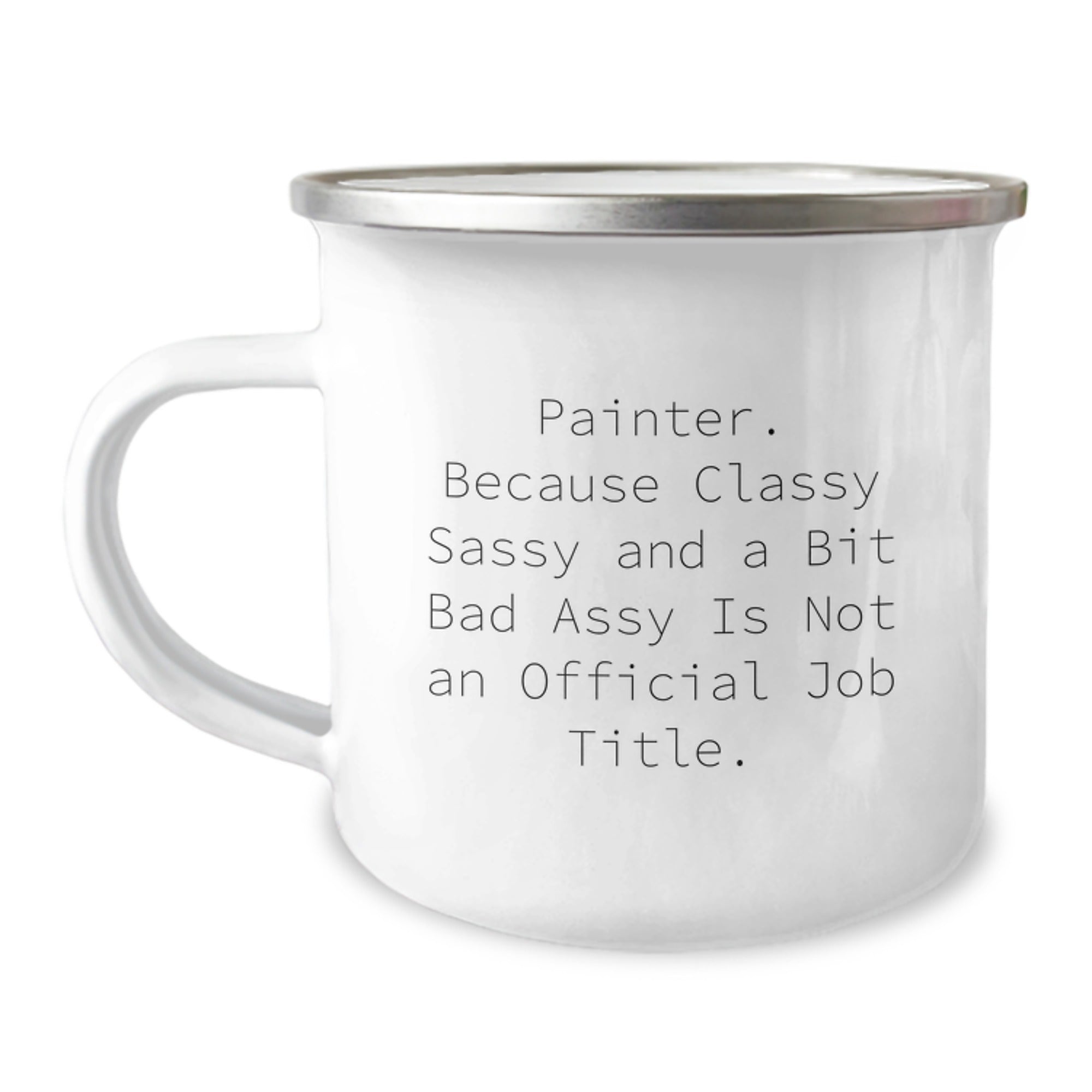 This Camping Mug features a bold and cheeky quote that speaks directly to the heart of the Painter: "Painter. Because Classy Sassy And A Bit Fearlessy Is Not An Official Job Title." Whether you're hiking through the woods or sipping coffee in the morning, this mug is sure to bring a smile to your face. The permanent printing won't fade after washing, so you can enjoy your favorite quote for years to come.