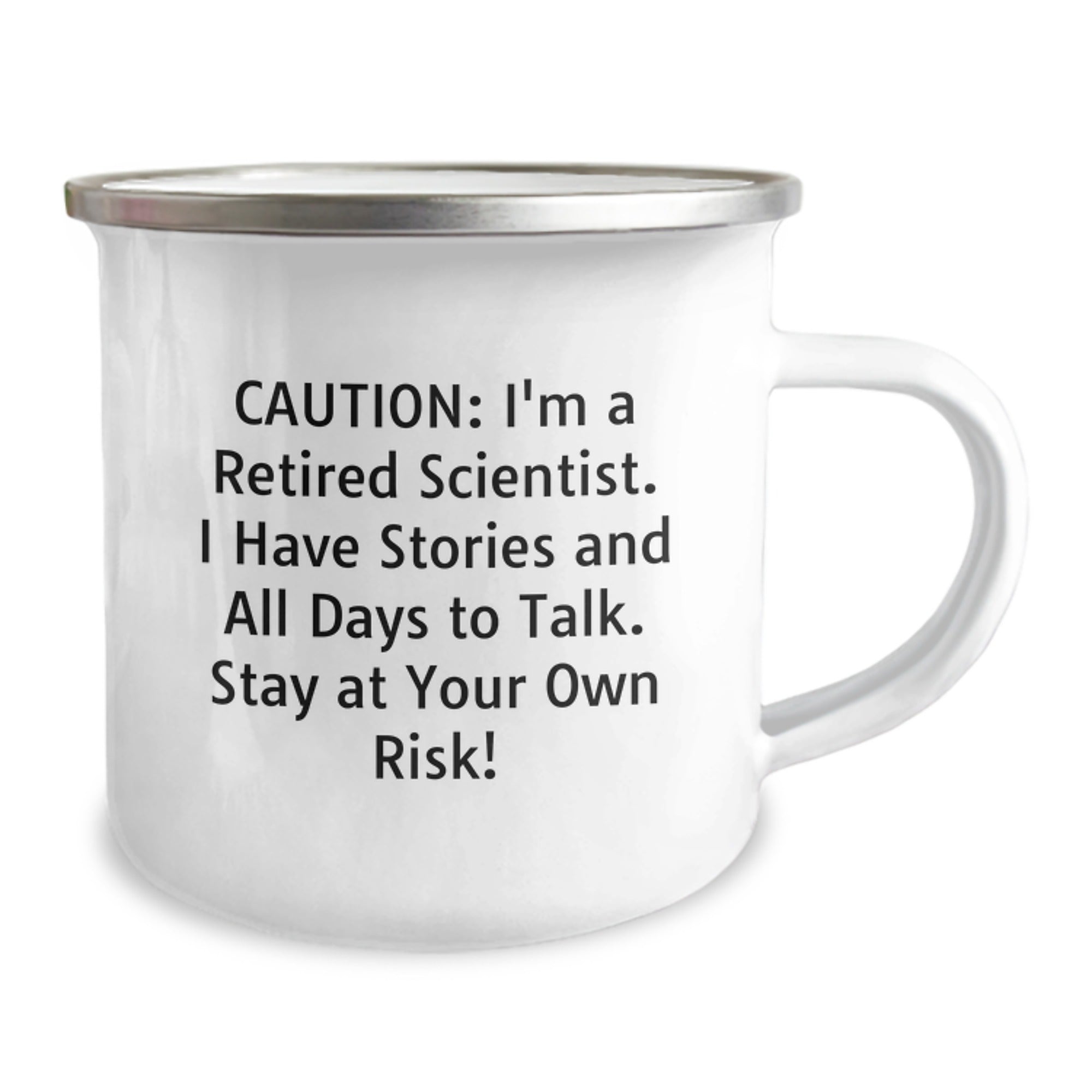 Funny Scientist Gifts - Camping Mug - Caution: I'm A Retired Scientist. I Have Stories And All Days To Talk. Stay At Your Own Risk! - Birthday Unique Gifts for Scientist Men