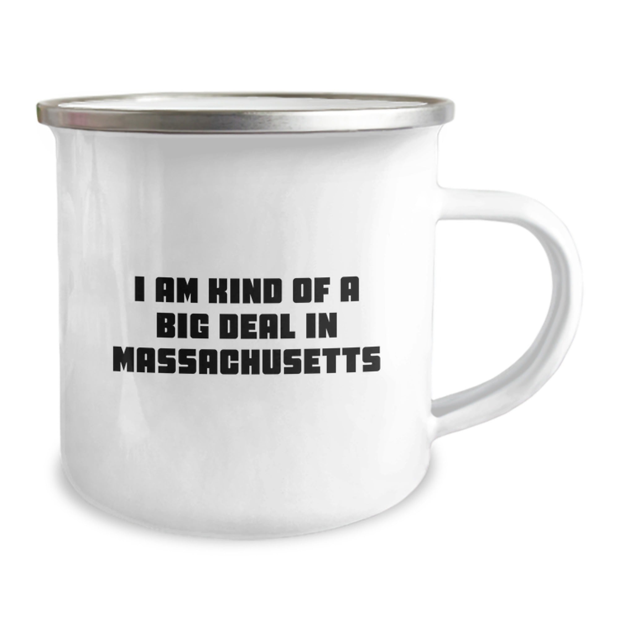 • This 'I Am Kind Of A Prime Selection In Massachusetts' Camping Mug is the ideal gift for any Massachusetts lover. Made from high-quality stainless steel with an enamel finish, it's both sturdy and stylish. The 12 oz capacity is perfect for hot or cold beverages, and the permanent printing won't fade after washing.