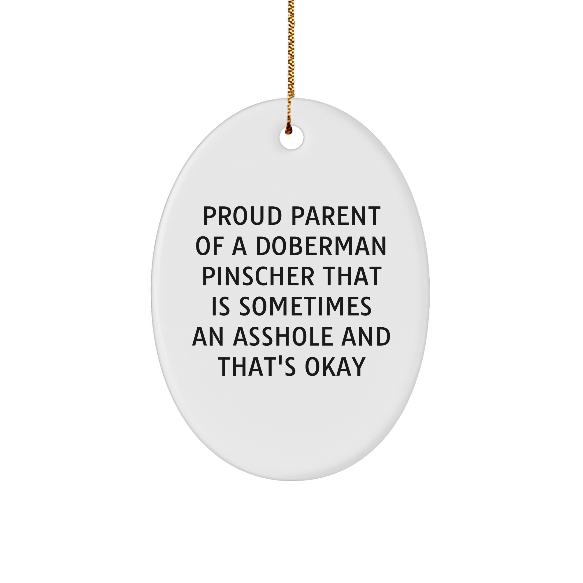 Doberman Pinscher Dog Oval Ornament, Proud Parent of a Doberman Pinscher That Is Sometimes an Asshole and That's Okay, Gifts for Doberman Pinscher Dog Lovers