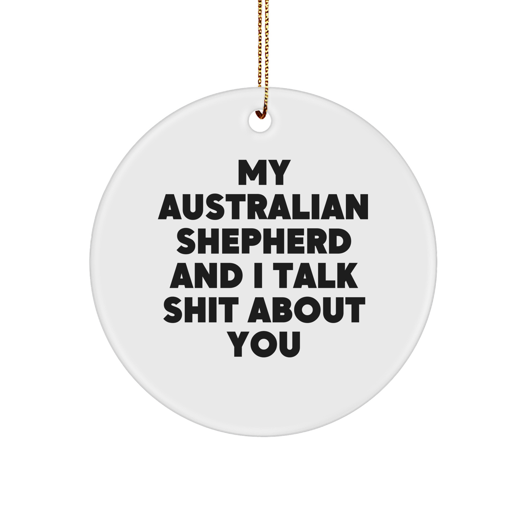 Funny Australian Shepherd Dog Gifts from Men to Friends, 'My Australian Shepherd And I Talk Shit About You' Christmas Circle Ornament, Perfect for Aussie Lovers