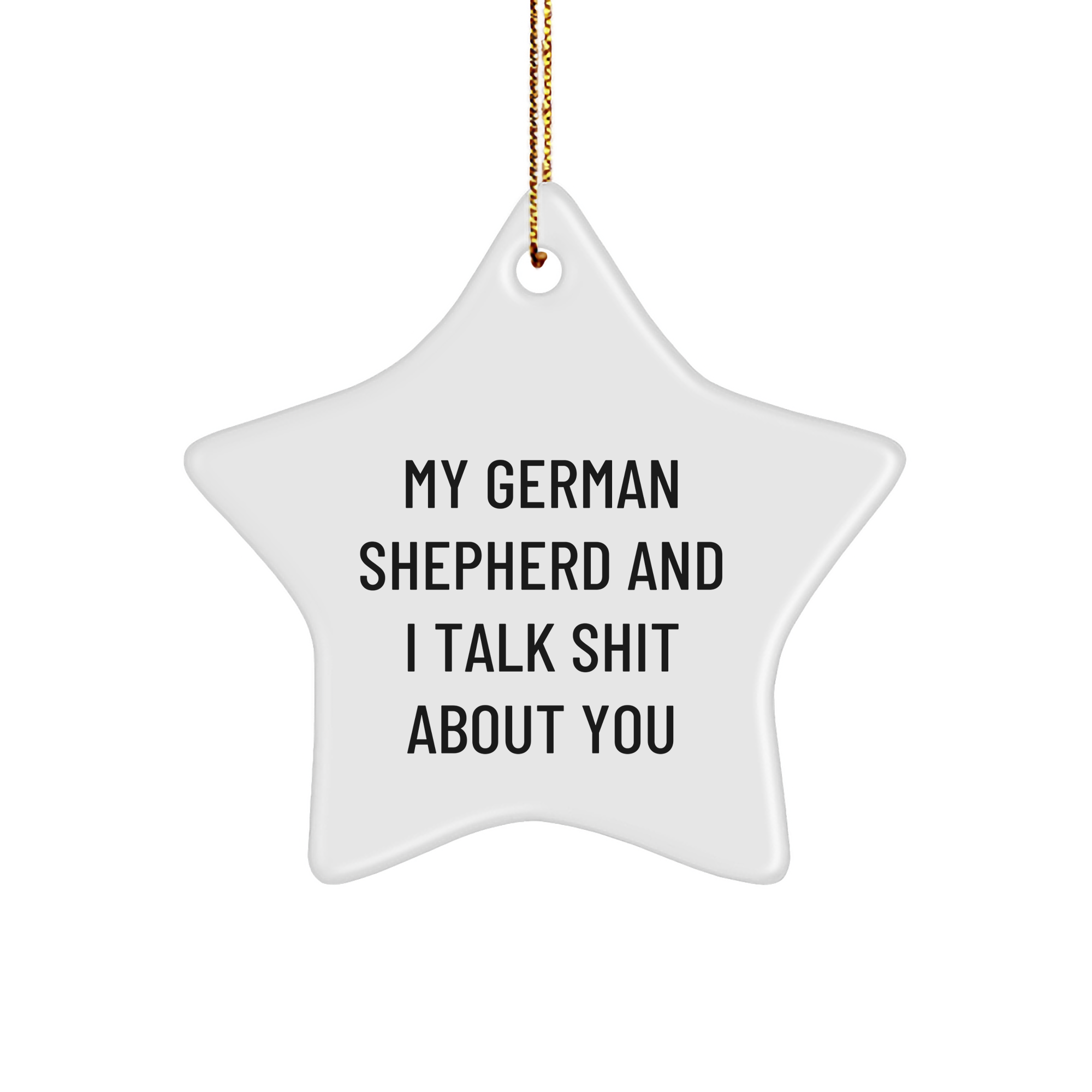 Funny German Shepherd Dog Gifts from Friends to Family - My German Shepherd And I Talk Shit About You Star Ornament for Christmas