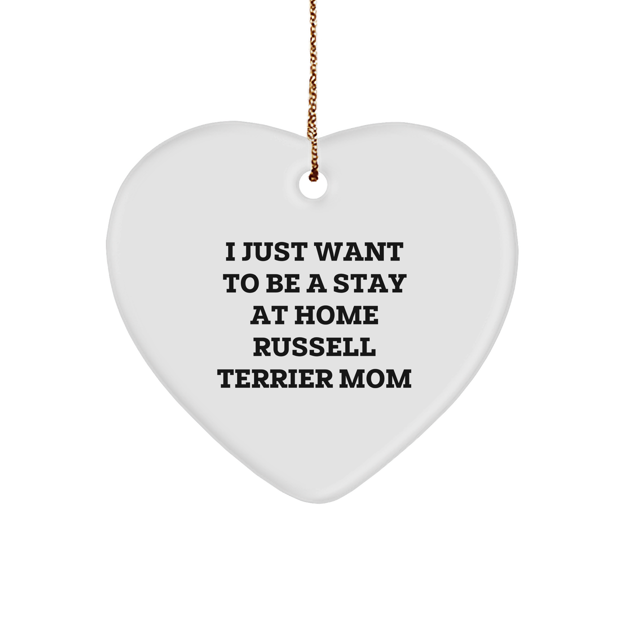 Funny Russell Terrier Dog Gifts from Mom, Heart Ornament with I Just Want To Be A Stay At Home Russell Terrier Mom Quote, Perfect Christmas Unique Gifts for Russell Terrier Dog Lovers