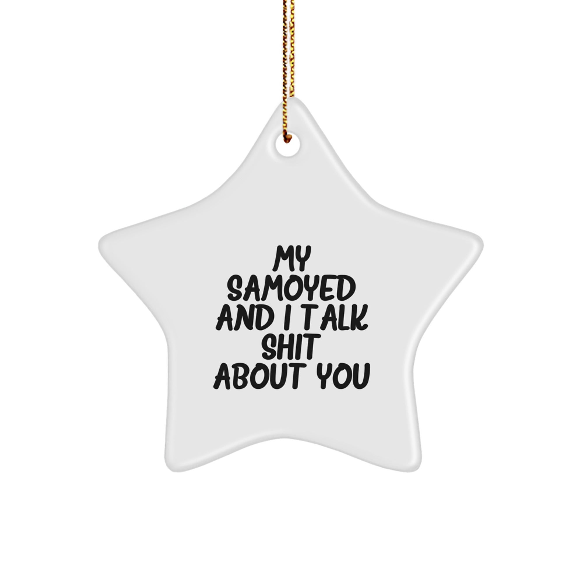 Funny Samoyed Dog Gifts for Christmas - My Samoyed And I Talk Shit About You Star Ornament