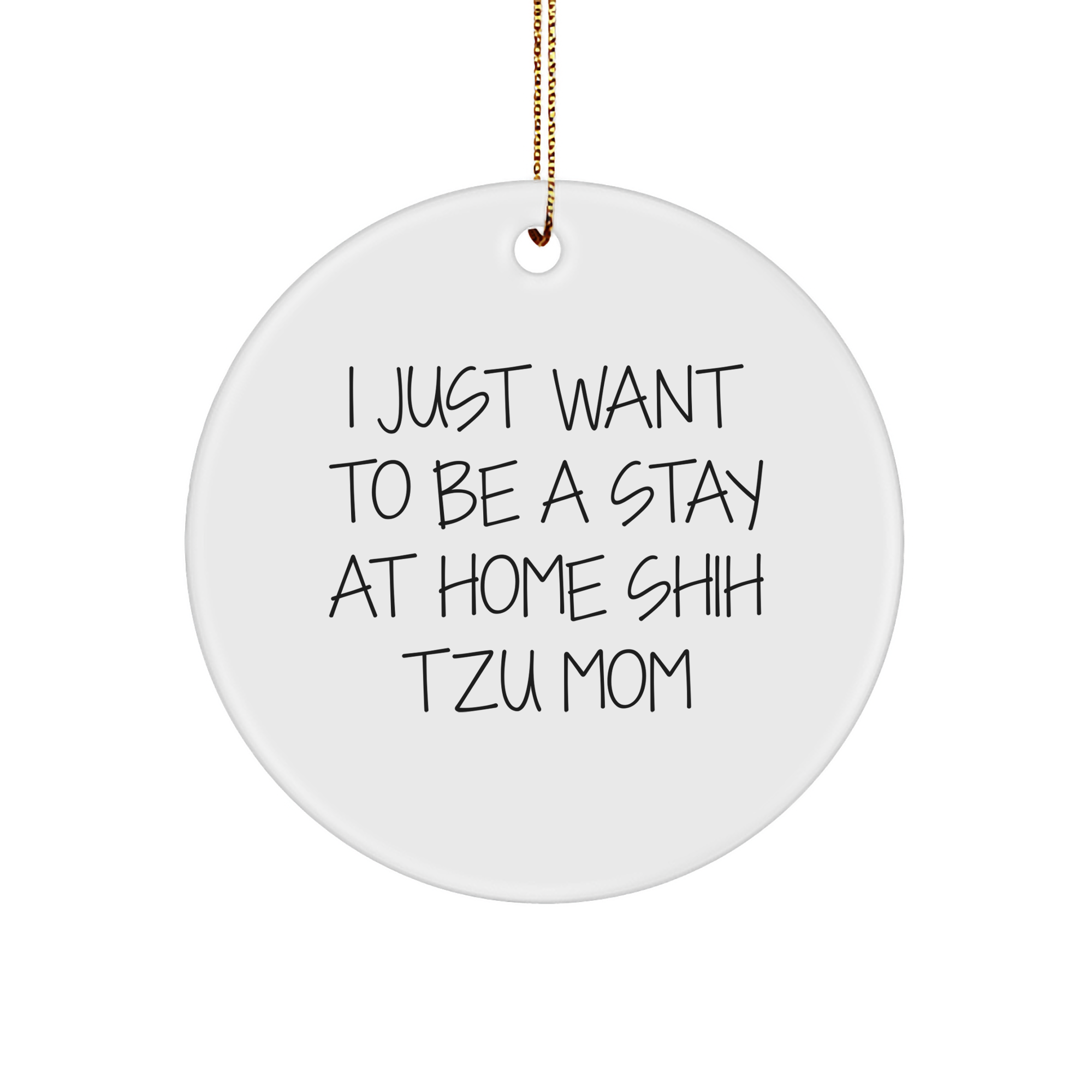 Are you a Shih Tzu dog enthusiast or looking for a unique gift for a Shih Tzu mom? This funny 'I Just Want To Be A Stay At Home Shih Tzu Mom' Circle Ornament is perfect for any occasion! Made from sturdy MDF with a high-gloss plastic finish, it's lightweight and resistant to breaking, making it safe for households with children or pets. The vibrant printing ensures bright, vivid colors that will catch anyone's attention. This festive gold cord ornament is easy to hang and perfect for stress-free decorating.