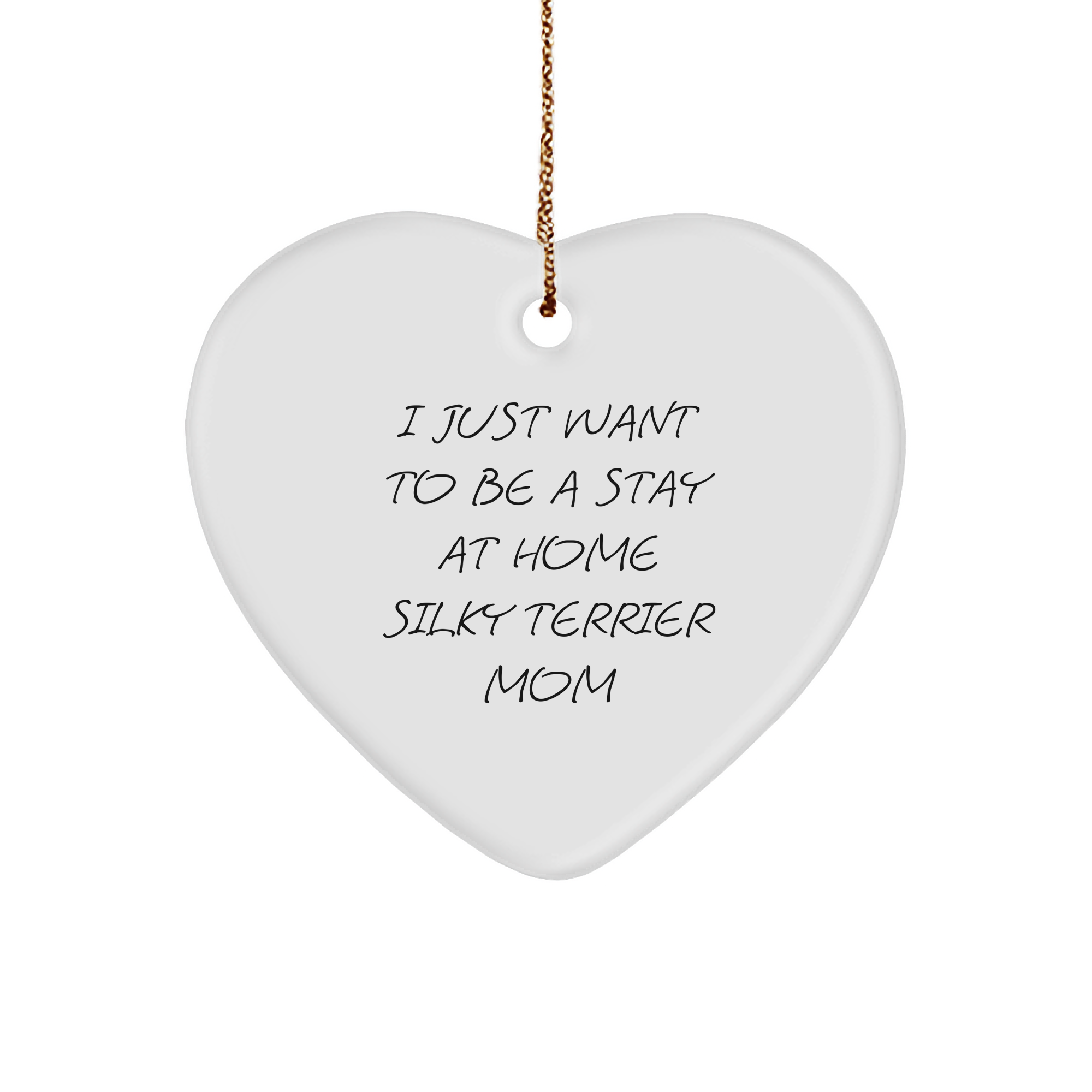 Funny Silky Terrier Dog Mom Gifts, Heart Ornament for Christmas - 'I Just Want To Be A Stay At Home Silky Terrier Mom' from Friends, Family, or Coworkers