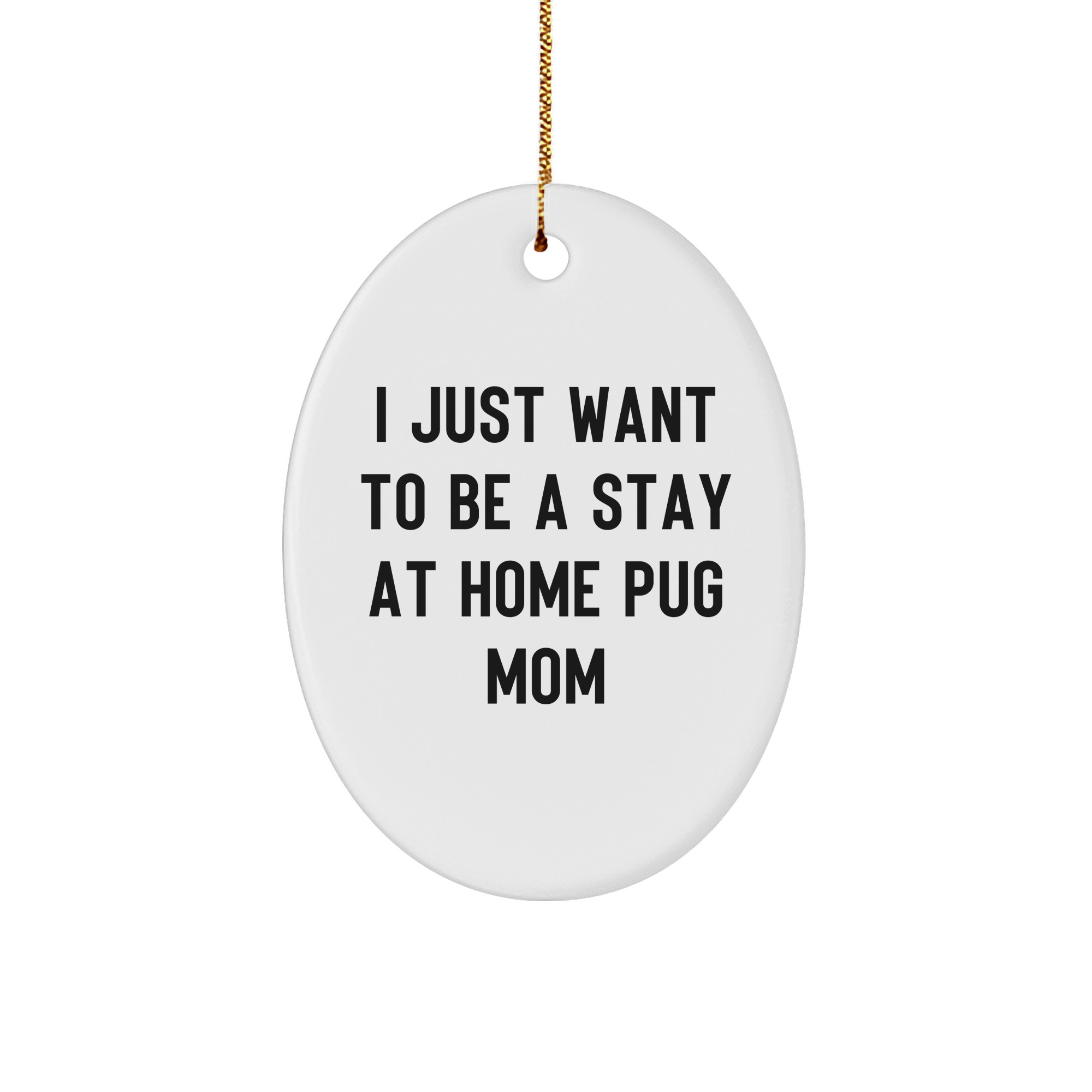 Pug Dog Mom's Joy, Funny Oval Ornament Gifts from Friends, Family, or Coworkers for Pug Dog Lovers this Christmas, 'I Just Want To Be A Stay At Home Pug Mom'