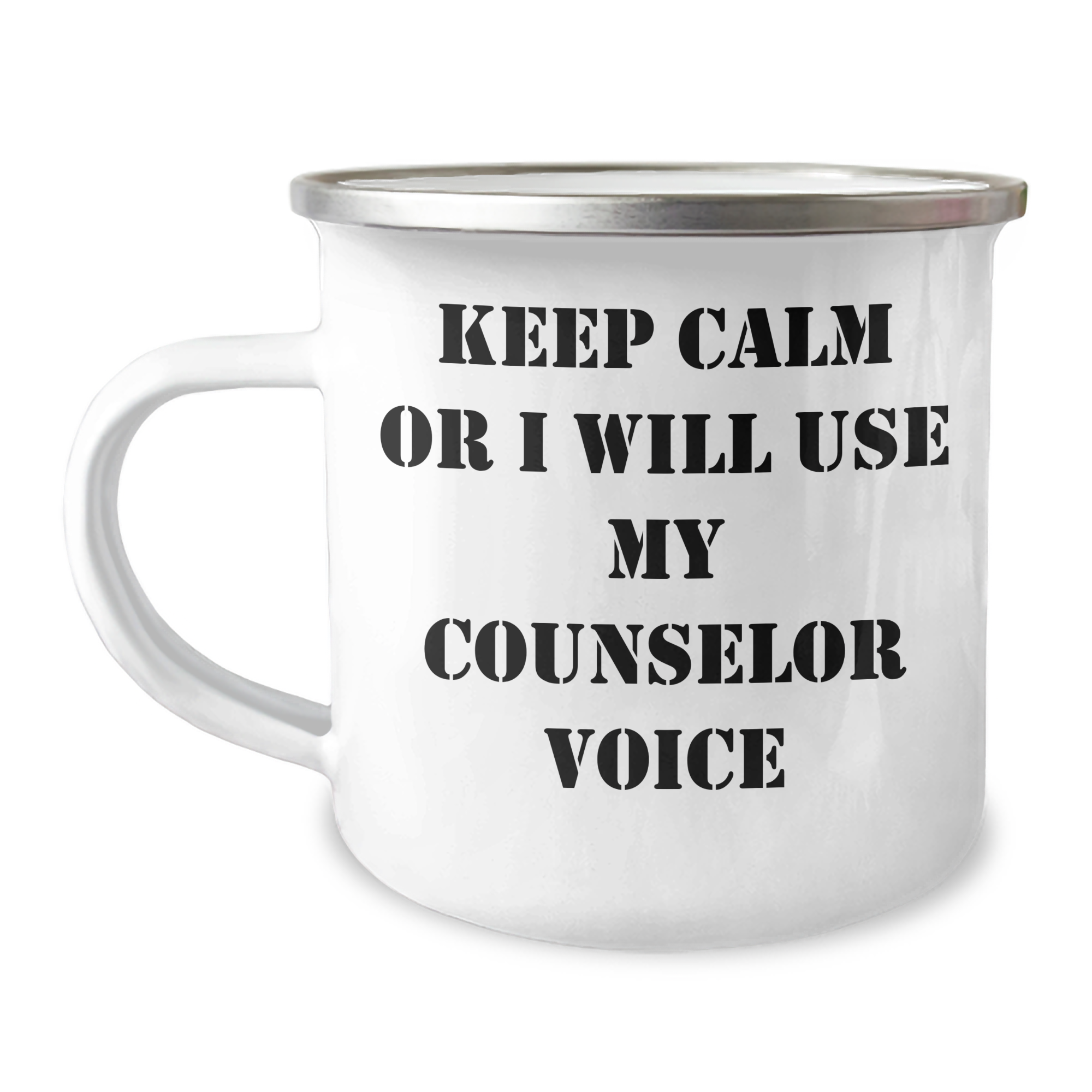 This Camping Mug is more than just a cup – it's a conversation starter! With the 'Keep Calm Or I Will Use My Counselor Voice' quote, you're sure to bring a smile to your friends' and family's faces. Perfect for Father's Day gifts or as a thoughtful present for any Counselor in your life.