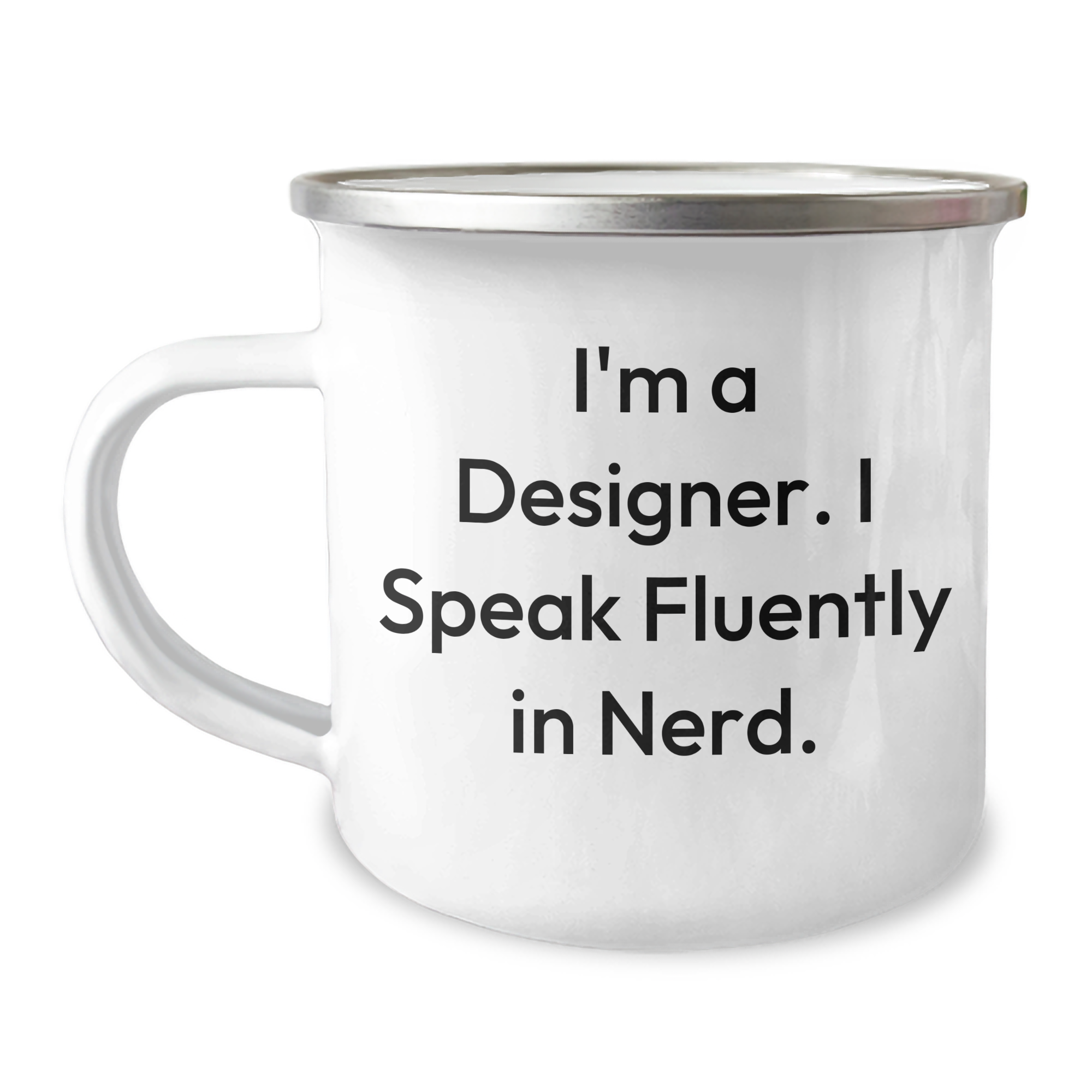 Designer Gifts from Friends, Unique Camping Mug for Him, I'm A Designer. I Speak Fluently In genius., Funny Father's Day Unique Gift