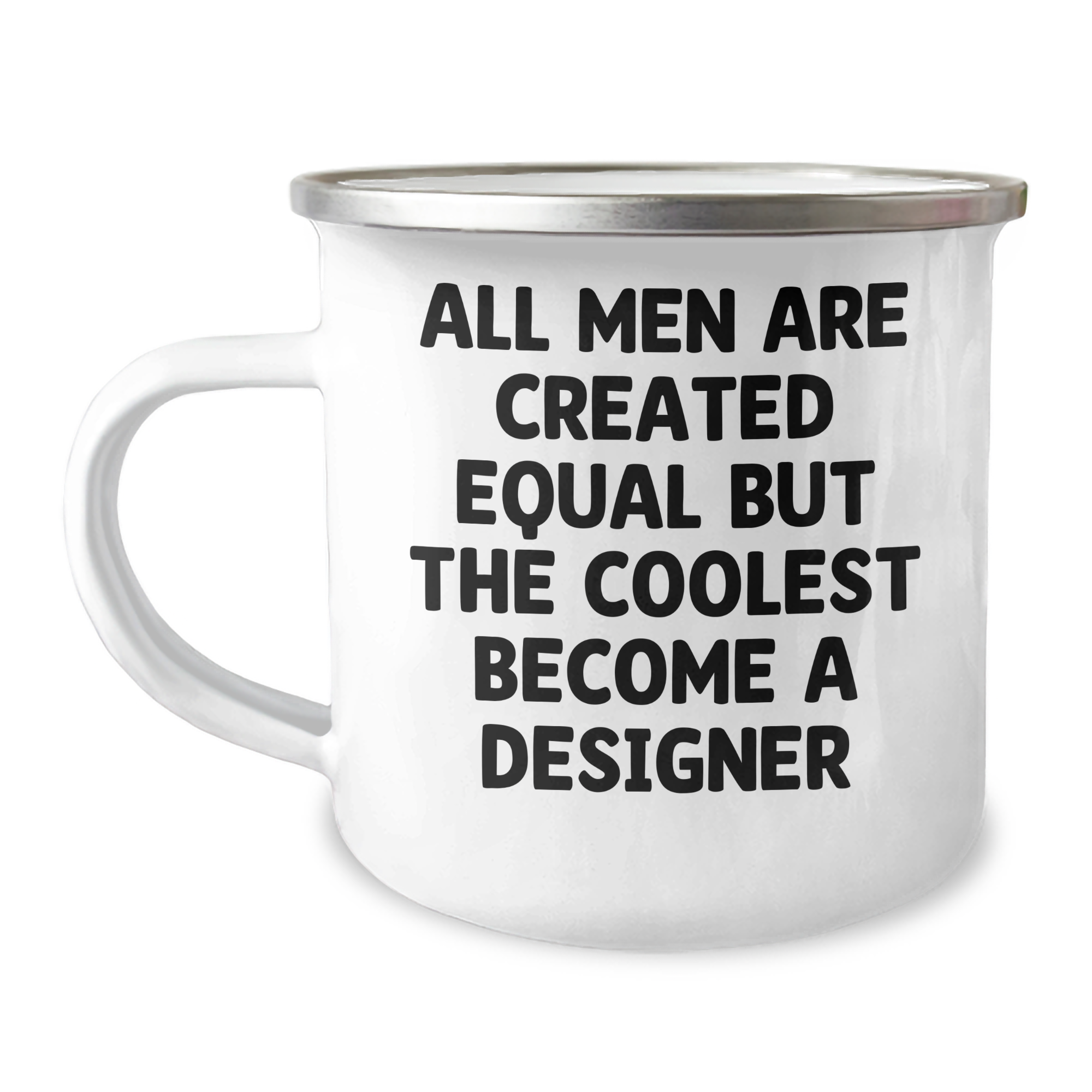 Funny Designer Gifts for Men, 'All Men Are Created Equal But The Coolest Become A Designer' Quote Camping Mug, Gifts from Men, Father's Day Unique Gifts