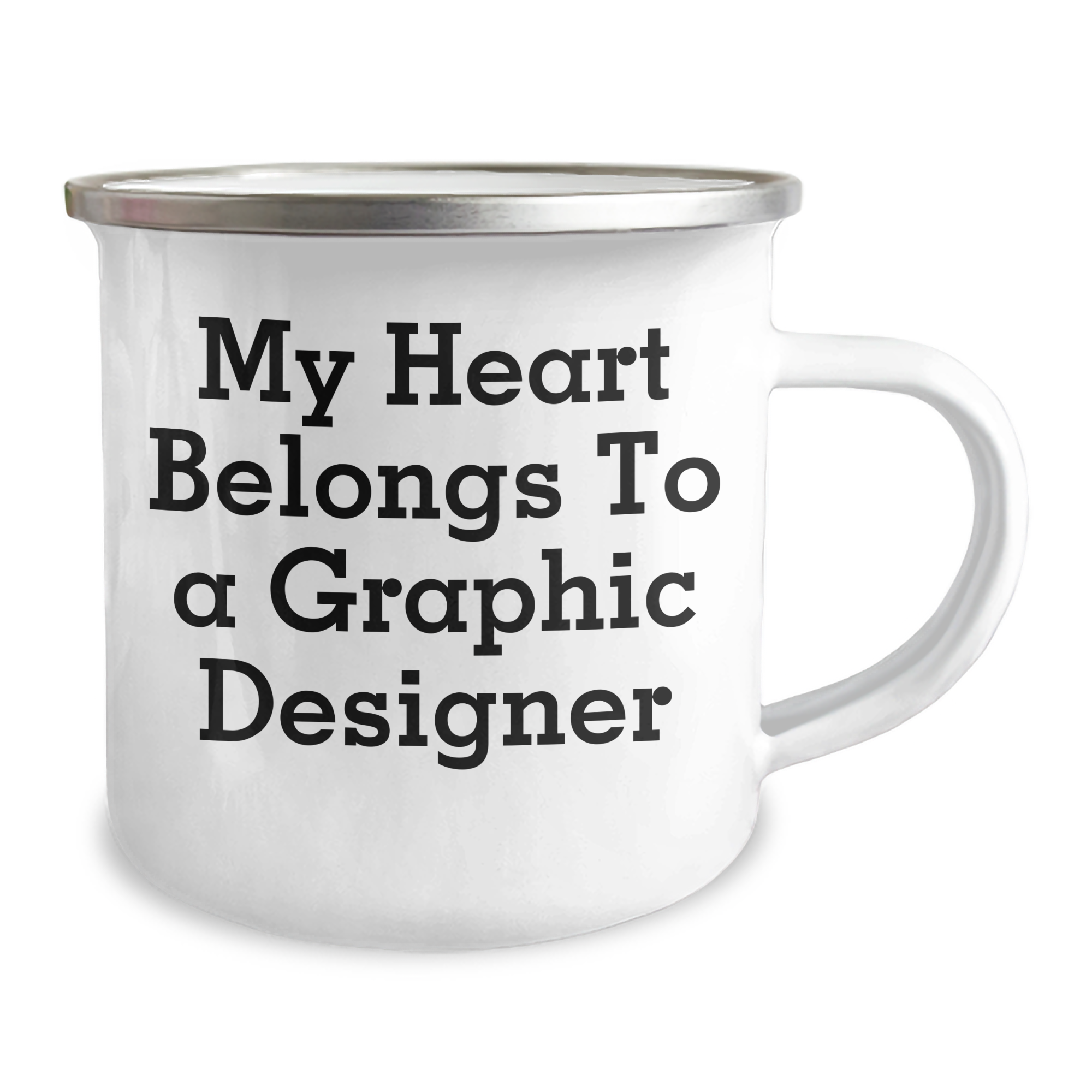 Funny Graphic Designer Gifts From Mom, Unique Camping Mugs for Dad's Heart, 'My Heart Belongs To A Graphic Designer' Quote, 12 oz Stainless Steel with Enamel Finish, Perfect for Father's Day