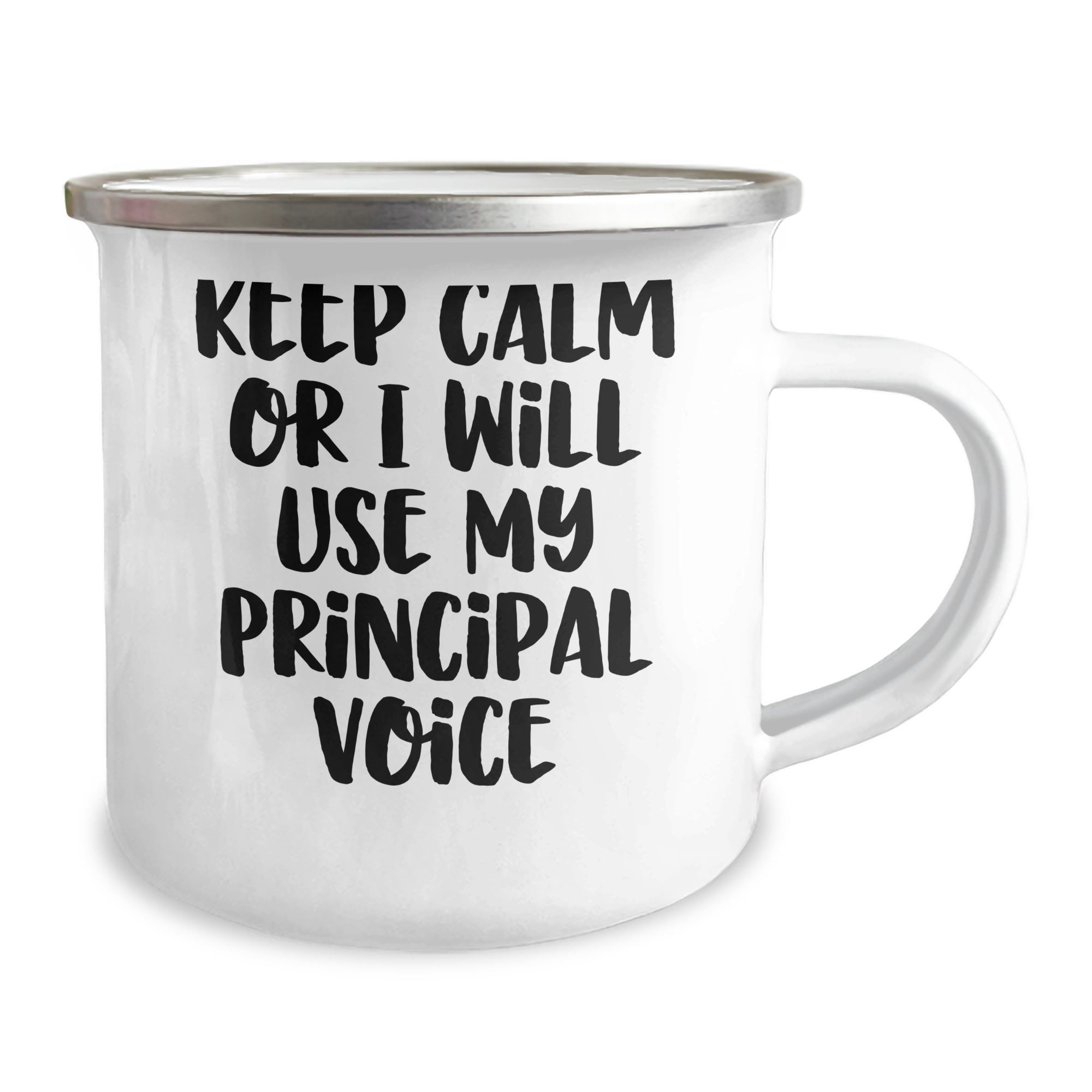 • Get your 'Keep Calm Or I Will Use My Principal Voice' enamel mug today and show the world your sense of humor, making it a great gift for Father's Day or any occasion.