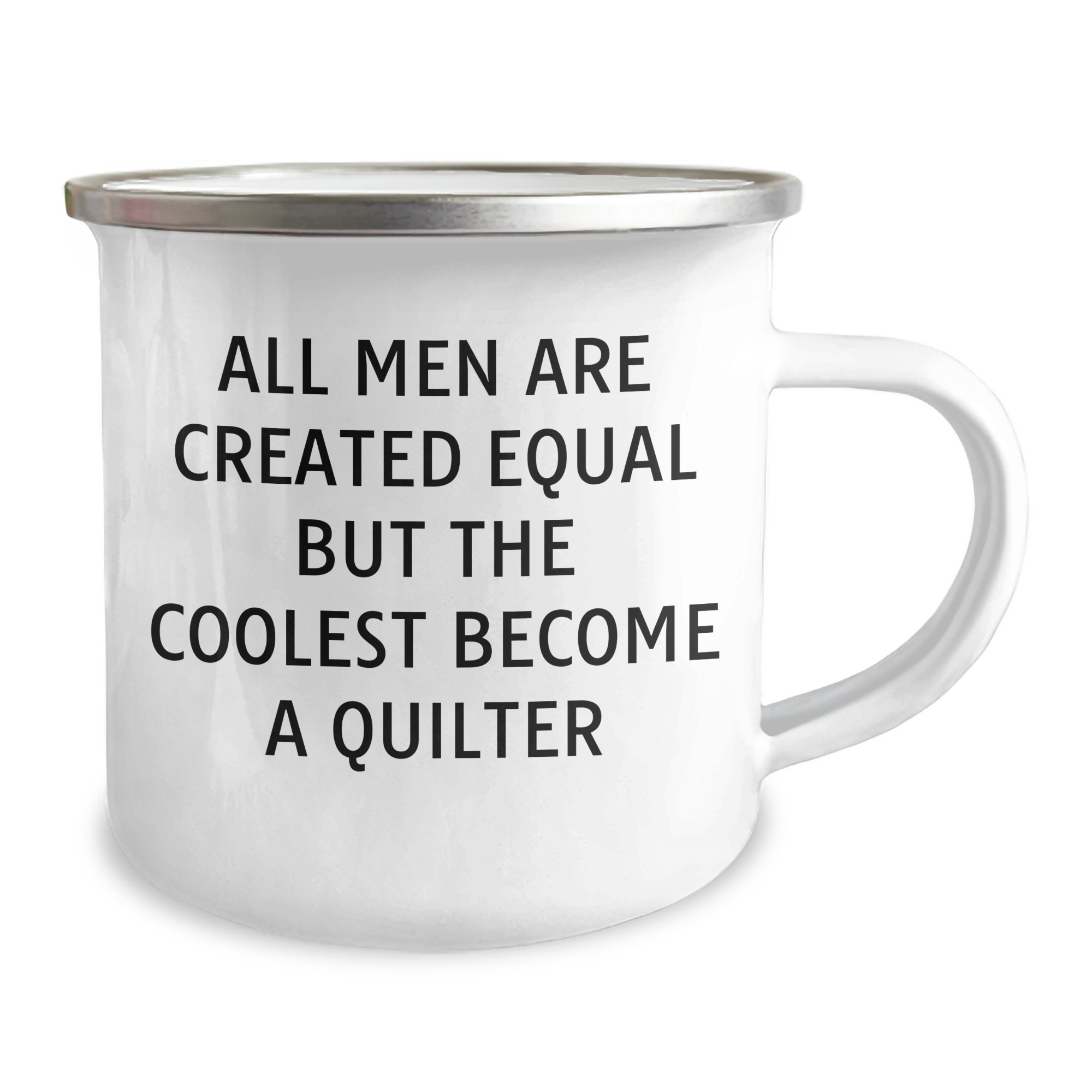 Funny Quilter Gifts for Dad - 'All Men Are Created Equal But The Coolest Become A Quilter' Camping Mug, Gifts from Men to Quilter Friends on Father's Day