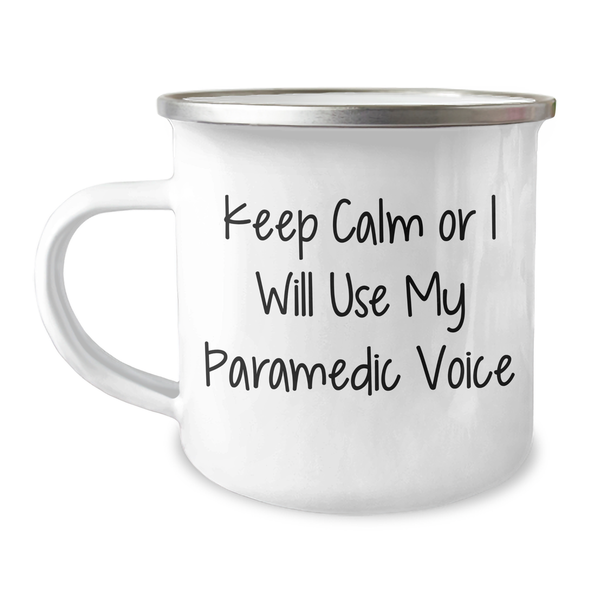 Stay calm and caffeinated on your camping trips with this Rescue Worker-approved 12 oz stainless steel mug, featuring a 'Keep Calm Or I Will Use My Rescue Worker Voice' quote that's sure to bring a smile to any outdoor enthusiast's face. Perfect for Father's Day gifts or everyday use, this camping mug is made with a sturdy enamel finish that won't chip or crack. The permanent printing ensures the design won't fade after repeated washing.