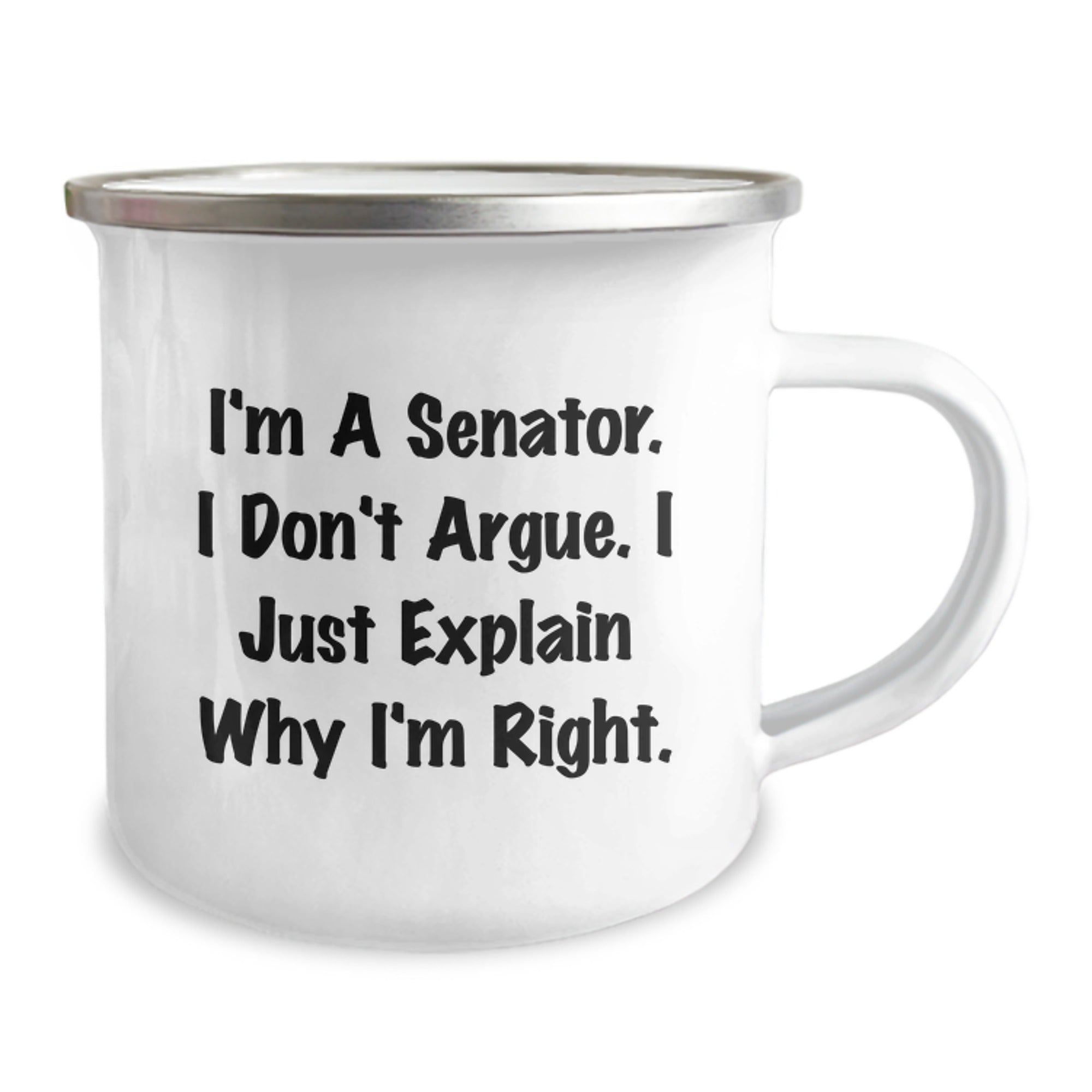 Funny Senator Gifts - Valentine's Unique Gifts from Friends to Senator, 'I'm A Senator. I Don't Argue. I Just Explain Why I'm Right.' Inspirational Camping Mug for Senator Lover