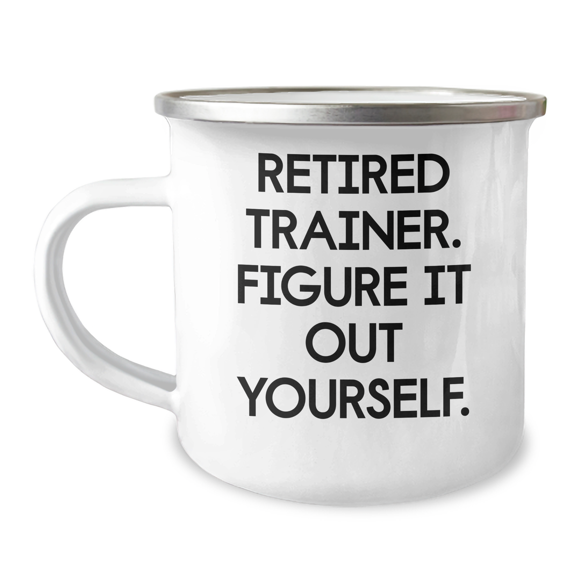 Funny Trainer Gifts for Men - Retired Trainer Figure It Out Yourself Camping Mug, 12 oz Stainless Steel with Enamel Finish, Gifts from Men to Men for Father's Day