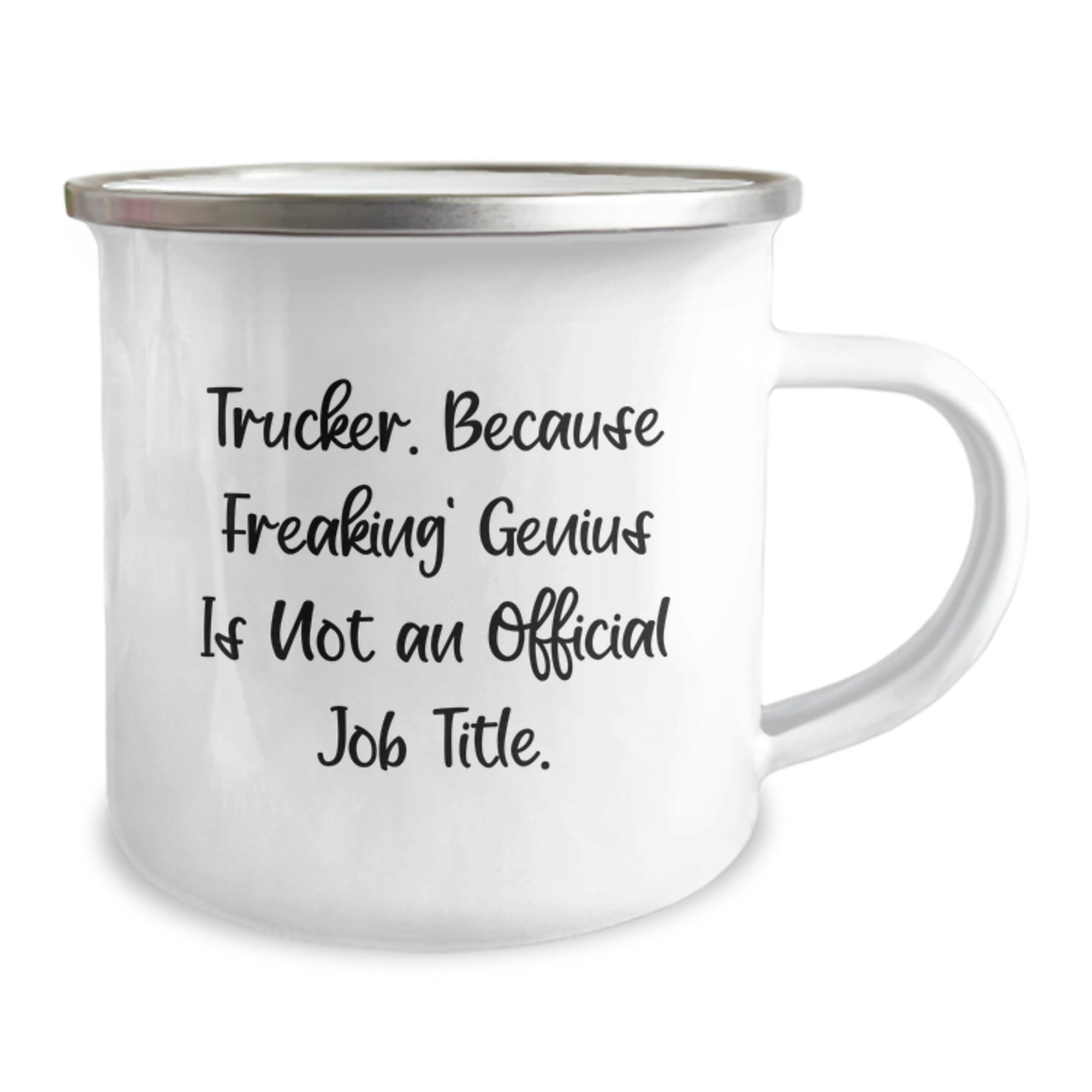 Look no further! This Trucker Camping Mug is the perfect way to show your appreciation for the hardworking men and women on the roads. The quote 'Trucker. Because Freaking' genius Is Not An Official Job Title.' is a humorous take on the important role truckers play in our daily lives, and it's sure to bring a smile to the face of any Trucker.