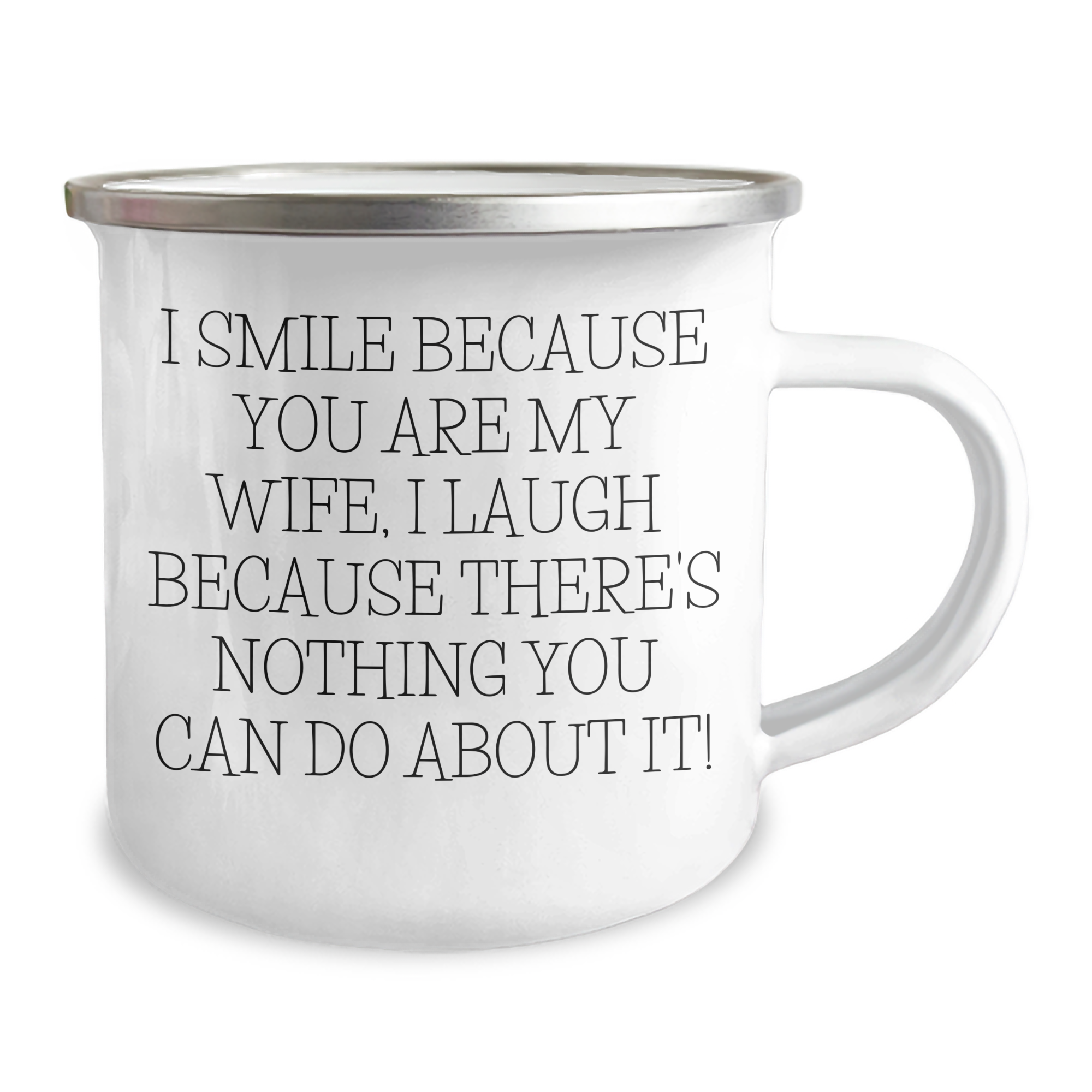 Funny Wife Gifts, I Smile Because You Are My Wife, I Laugh Because There's Nothing You Can Do About It! - Camping Mug for Her - Gifts from Men, Unique Father's Day Unique Gifts for Wife