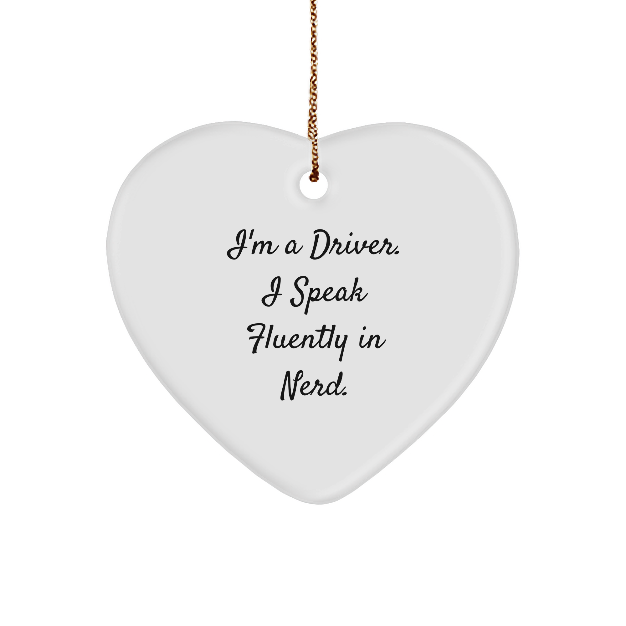 Funny Driver Gifts I'm A Driver. I Speak Fluently In genius. Heart Ornament for Men, Women, Friends, Coworkers, Family, Christmas Unique Gifts