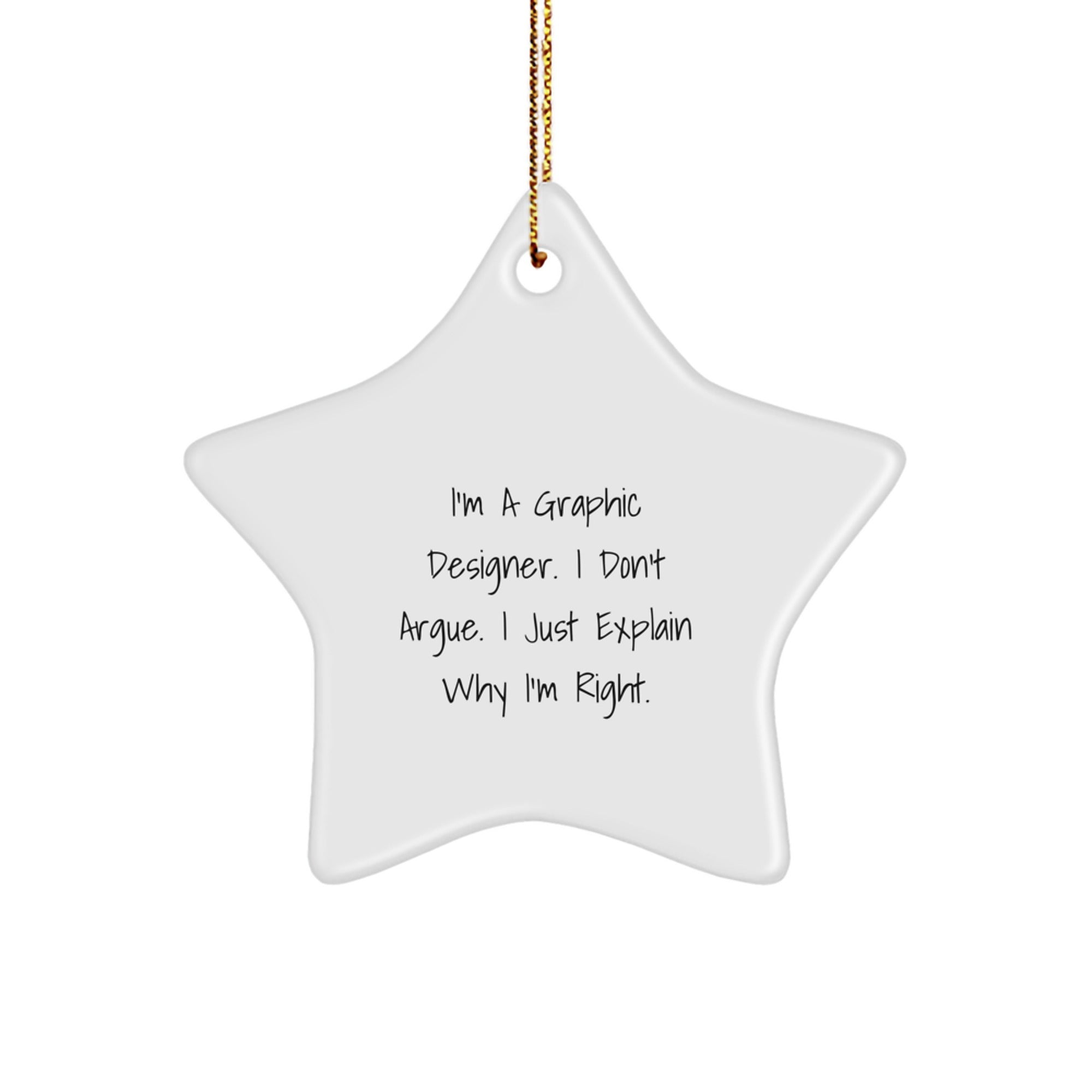 Get ready to shine a light on your love for Graphic Design with this witty star ornament that screams 'I'm A Graphic Designer. I Don't Argue. I Just Explain Why I'm Right.'
