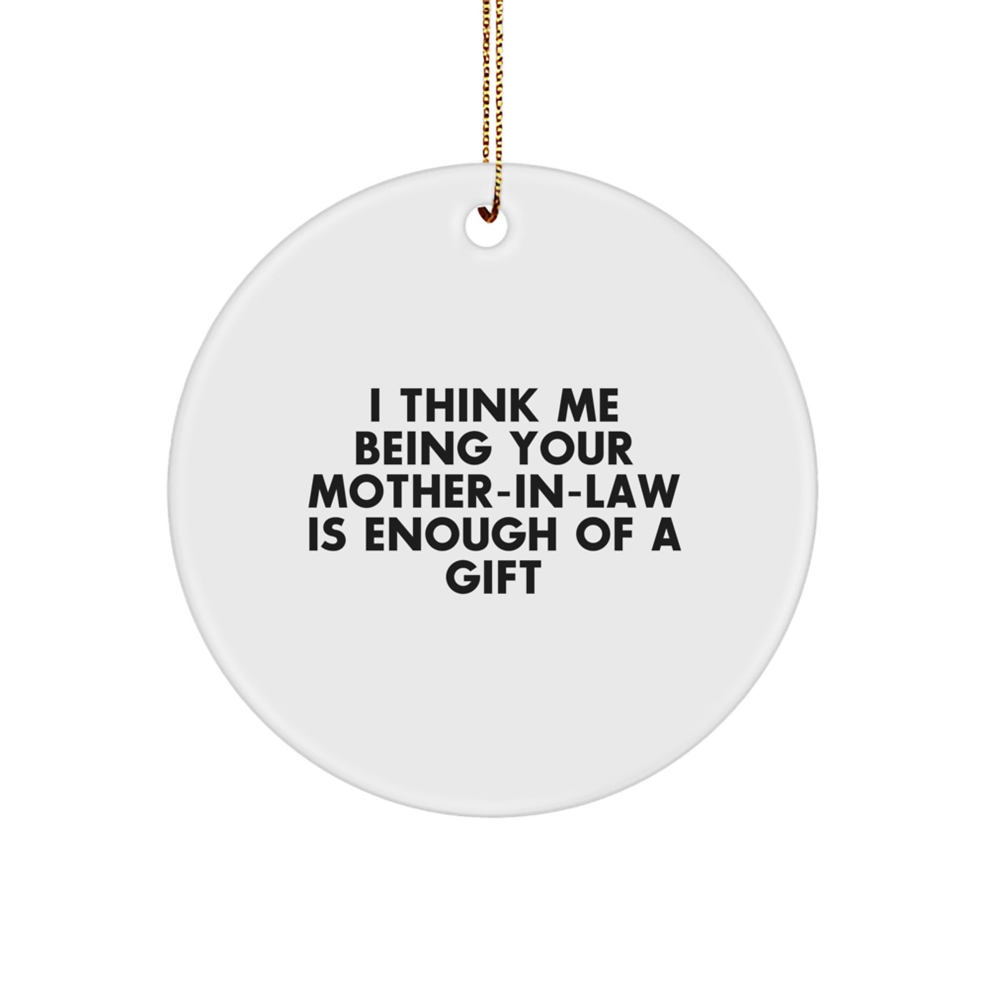 Funny Mom-in-law Gifts for Christmas - 'I Think Me Being Your Mom-in-law Is Enough Of A Gift' Circle Ornament, Gifts from Family to Mom-in-law