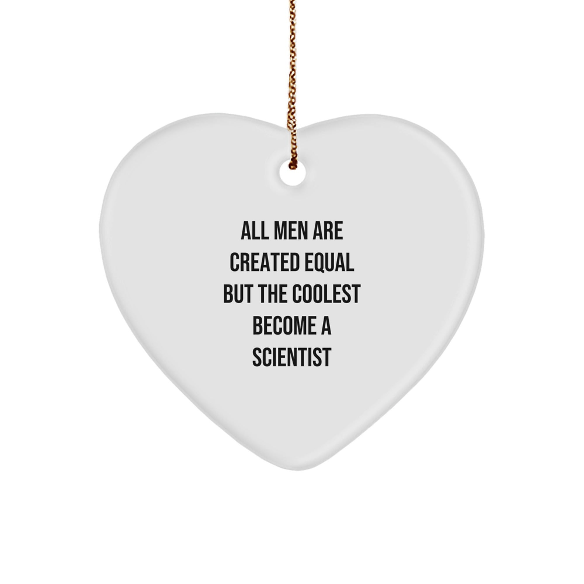 Funny Scientist Gifts for Men - Heart Ornament, 'All Men Are Created Equal But The Coolest Become A Scientist' Quote, Christmas Unique Gifts from Friends or Family