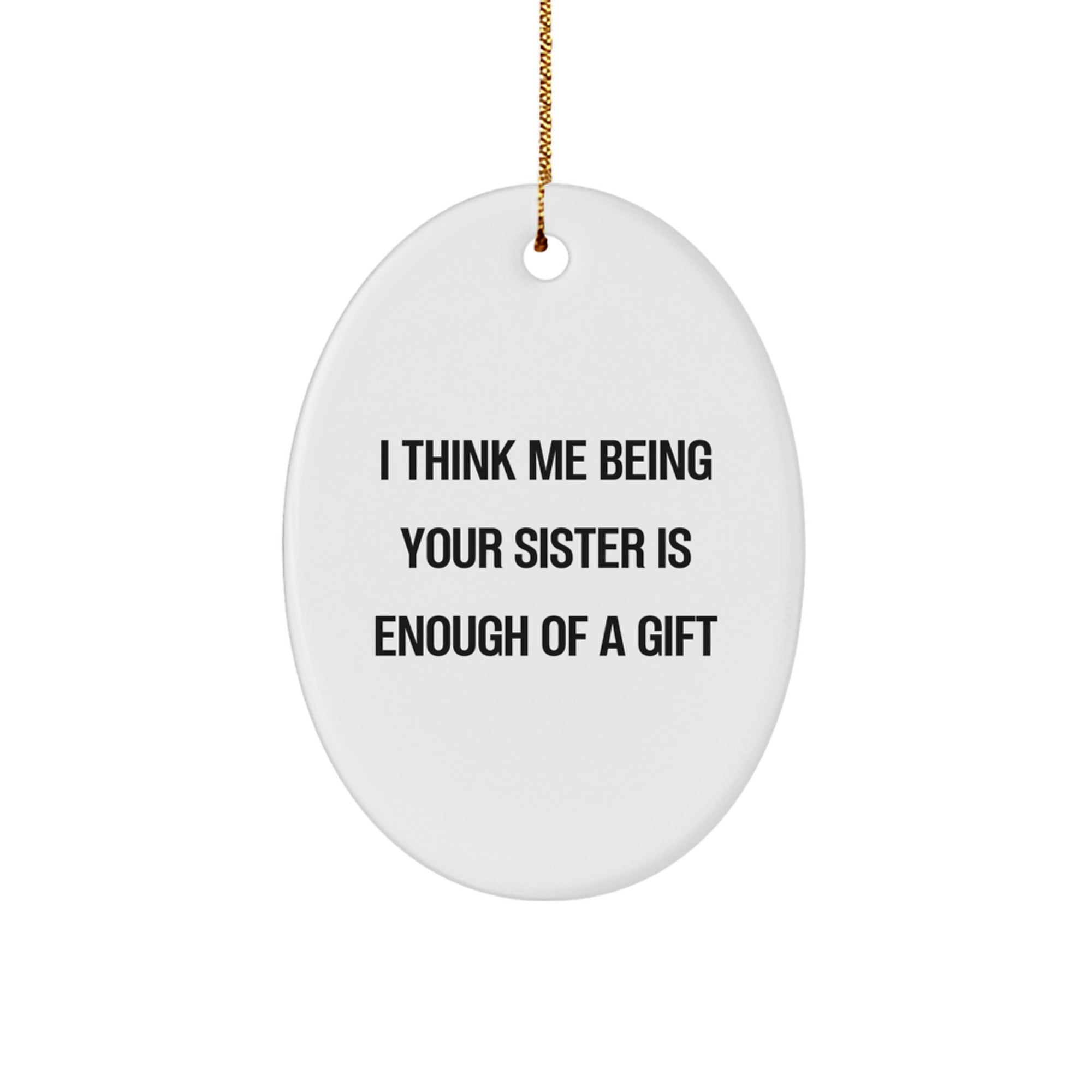 Funny Sister Gifts - I Think Me Being Your Sister Is Enough Of A Gift Oval Ornament, Gifts from Family - Gifts for Sister, Unique Christmas Unique Gifts