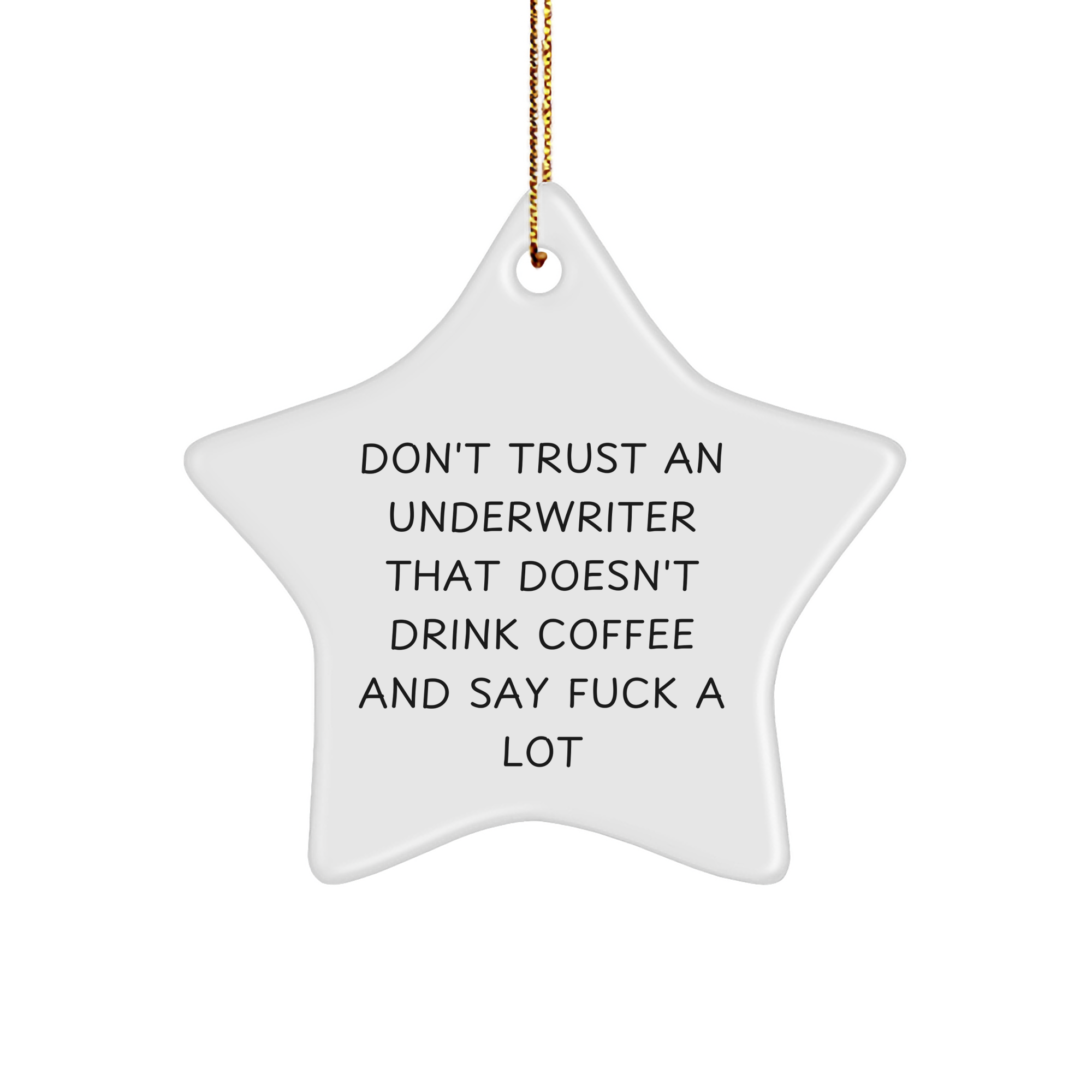 Funny Underwriter Gifts from Friends - Don't Trust An Underwriter That Doesn't Drink Coffee And Say F--k A Lot - Star Ornament for Christmas