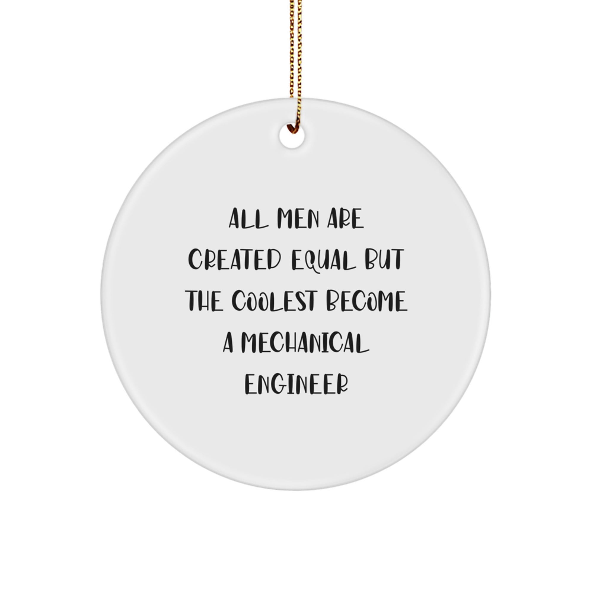 Mechanical Engineer Gifts from Family, Funny Circle Ornament for Christmas, 'All Men Are Created Equal But The Coolest Become A Mechanical Engineer' Quote