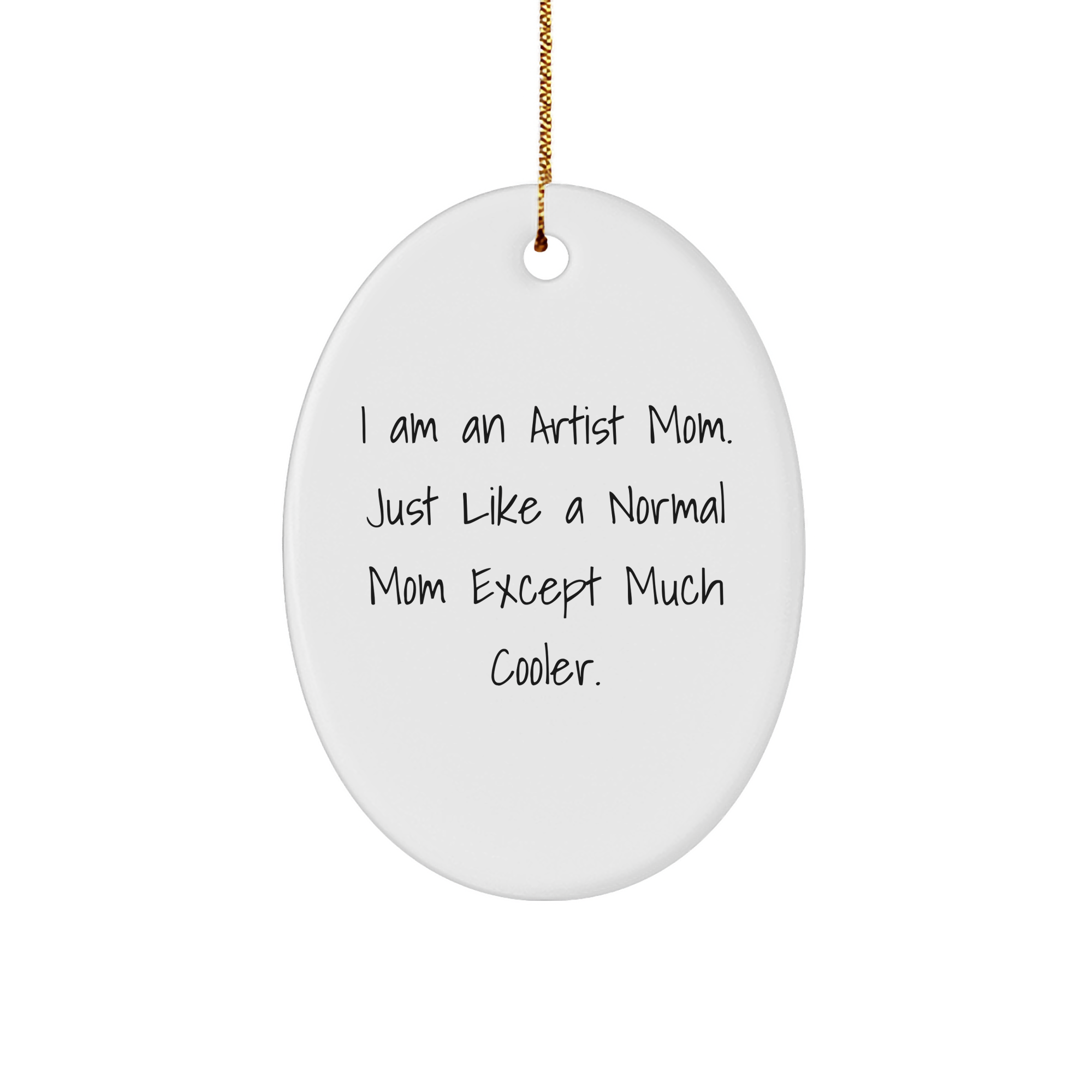 Artist Mom Oval Ornament, Funny Quote, White Sturdy MDF, Gold-Tone String, Christmas Unique Gifts from Mom, Gifts for Artists