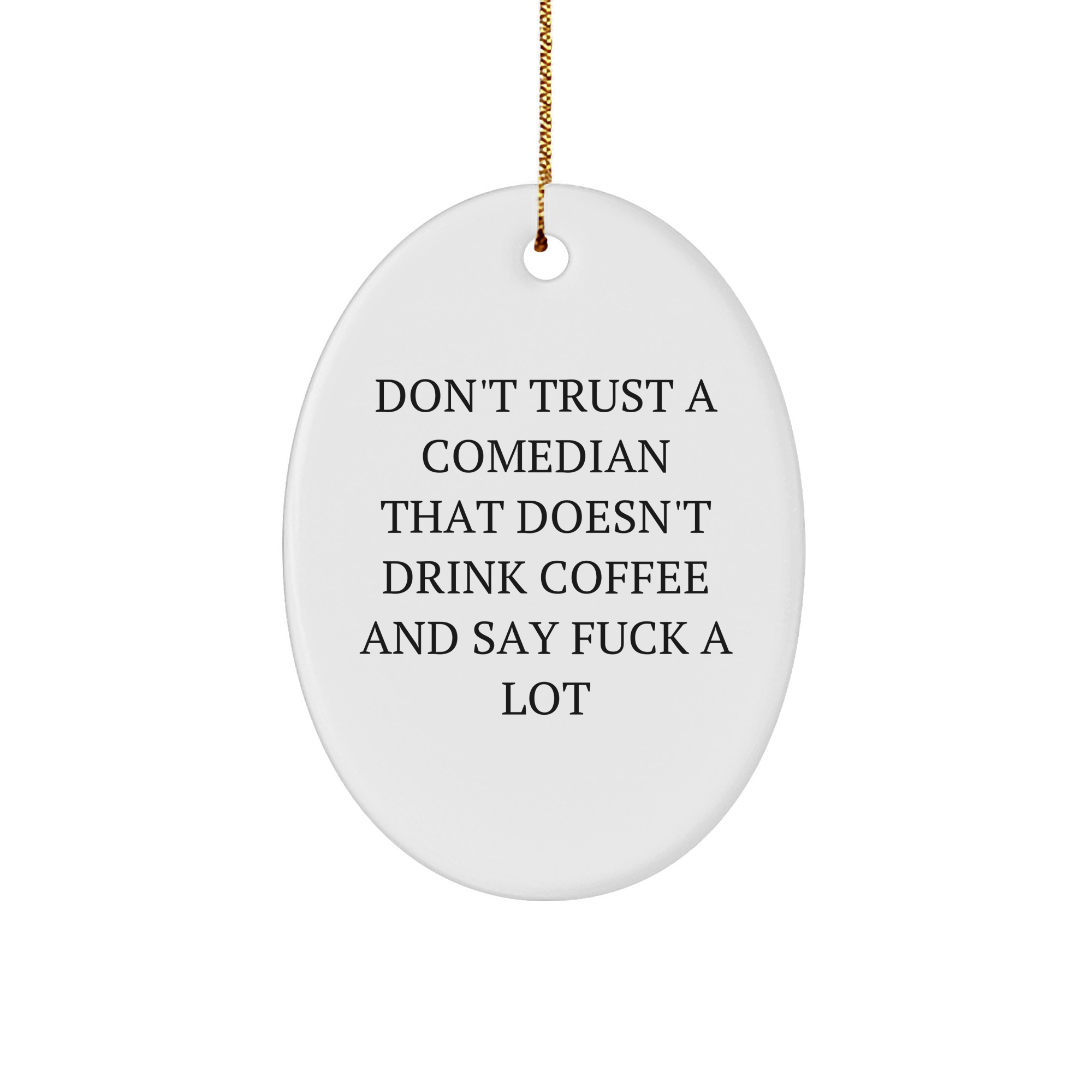 Comedian Oval Ornament Don't Trust A Comedian That Doesn't Drink Coffee And Say F--k A Lot Funny Gifts from Friends to Comedians for Christmas