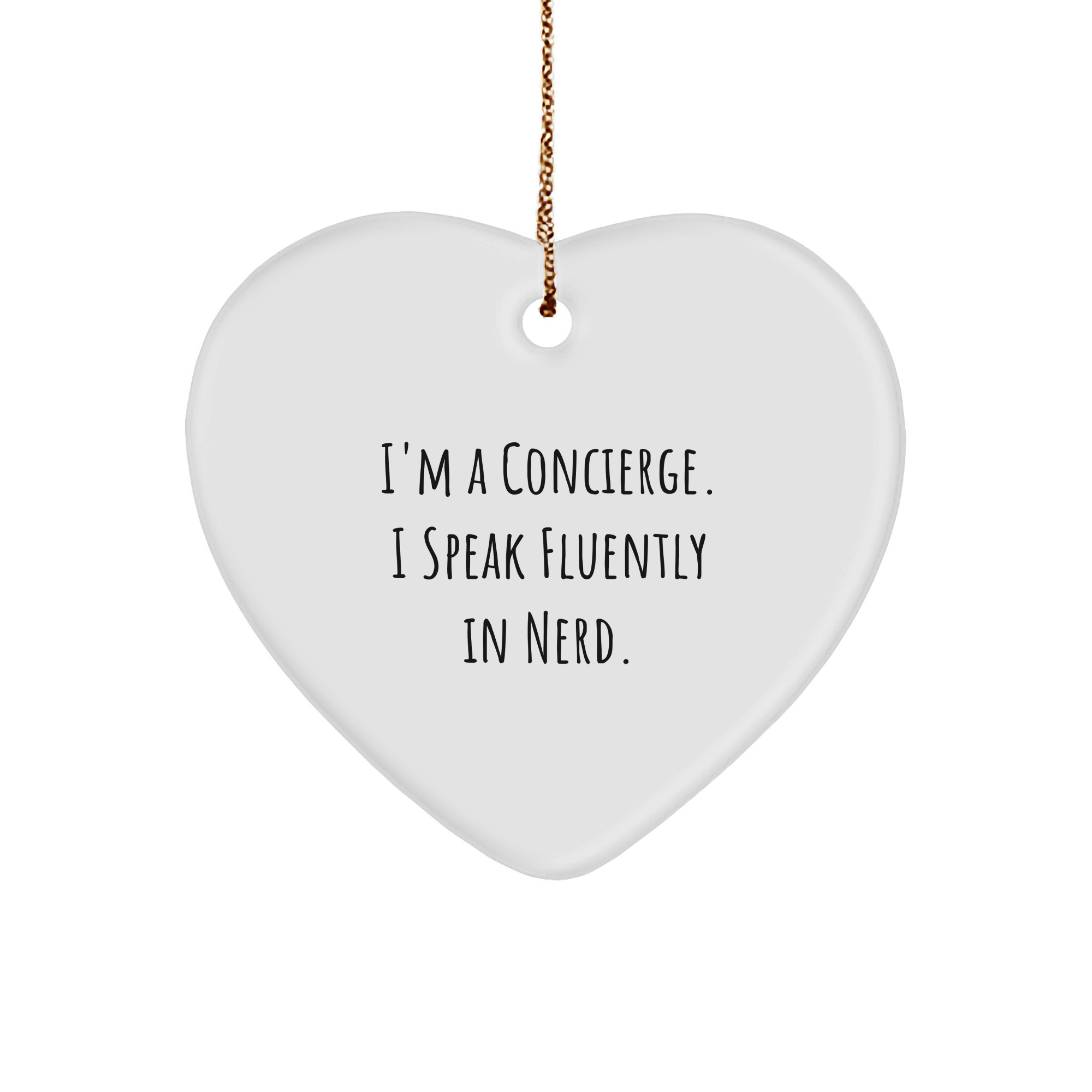 Concierge Gifts from Friends - Funny Heart Ornament for Men, Women, or Coworkers - I'm A Concierge. I Speak Fluently In genius. - Christmas Unique Gifts