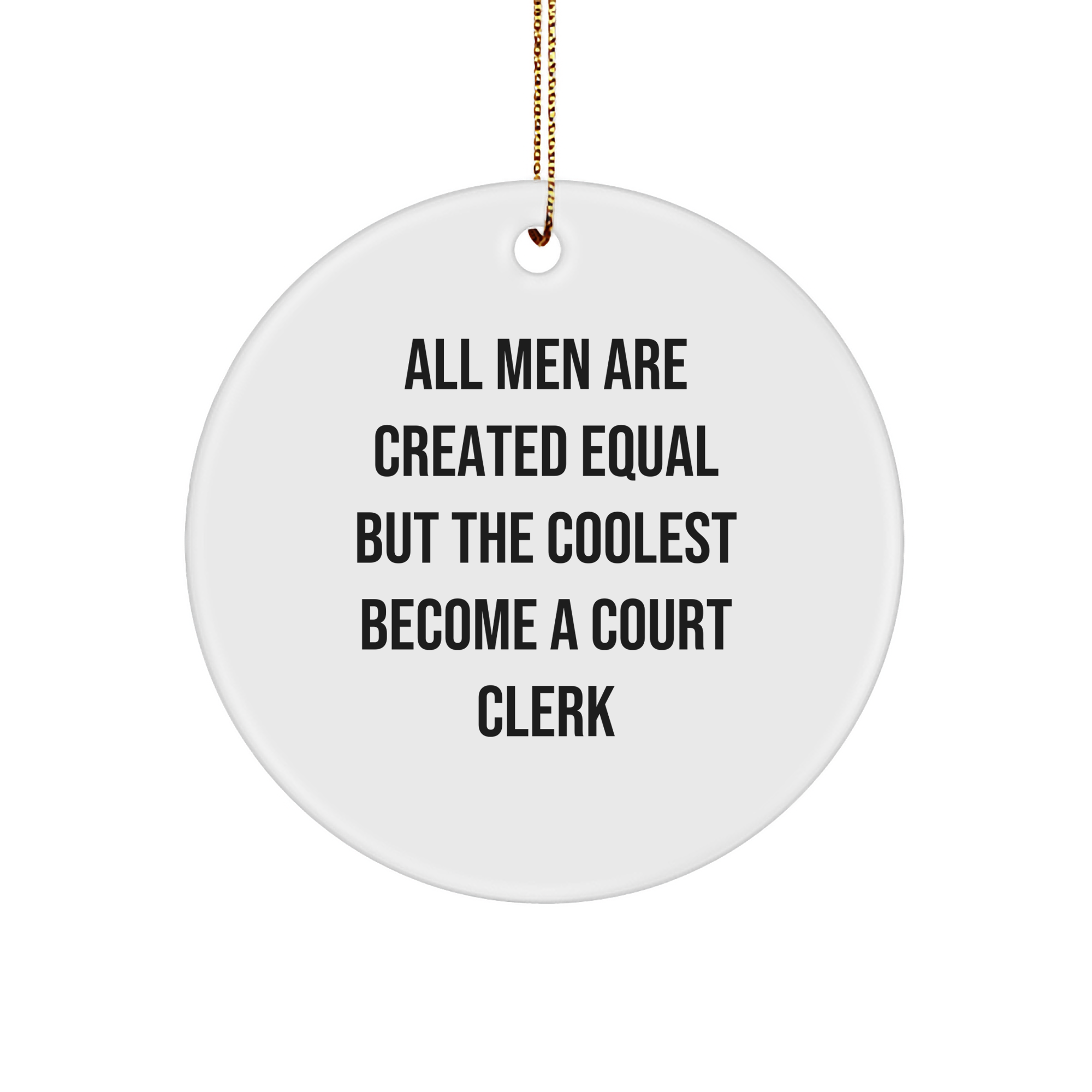 Make a funny and thoughtful gift for the Court Clerk in your life with this Circle Ornament, featuring the quote 'All Men Are Created Equal But The Coolest Become A Court Clerk'