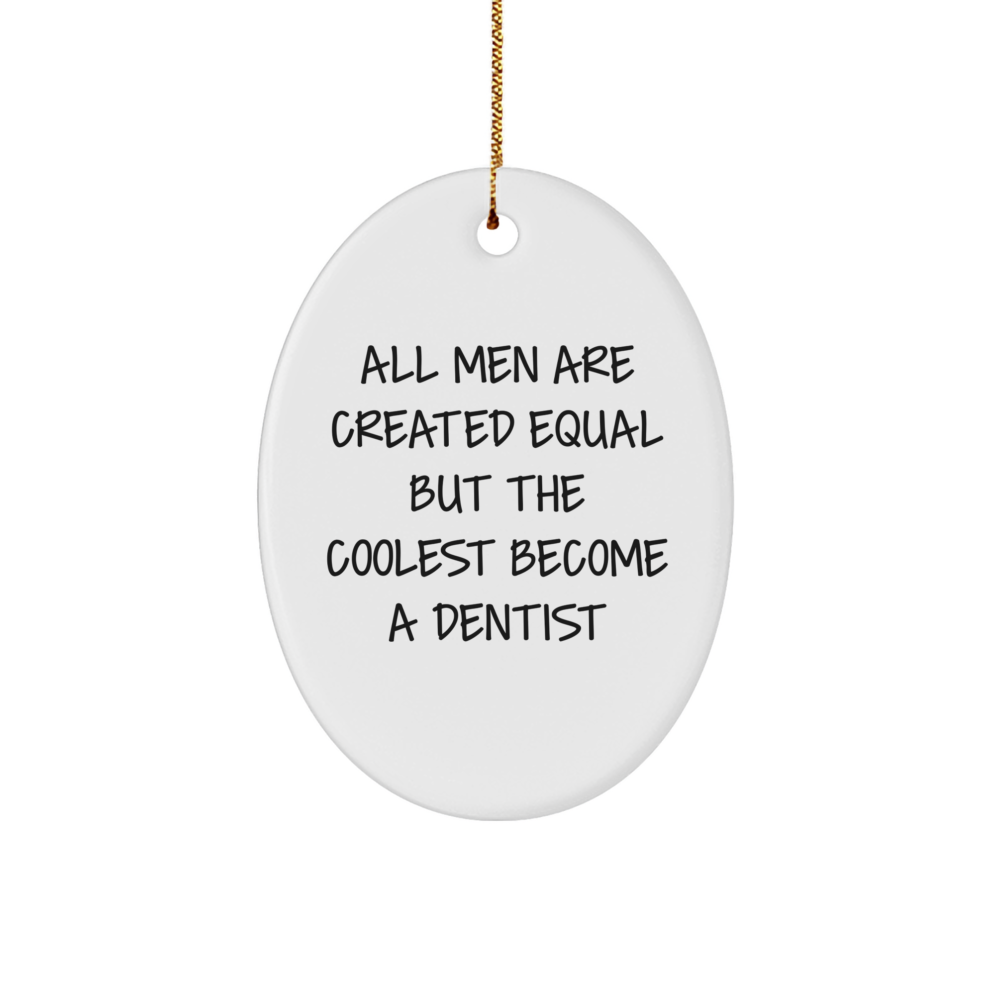 Dentist Gifts from Men - All Men Are Created Equal But The Coolest Become A Dentist Oval Ornament, Funny Quote on Christmas Decorations