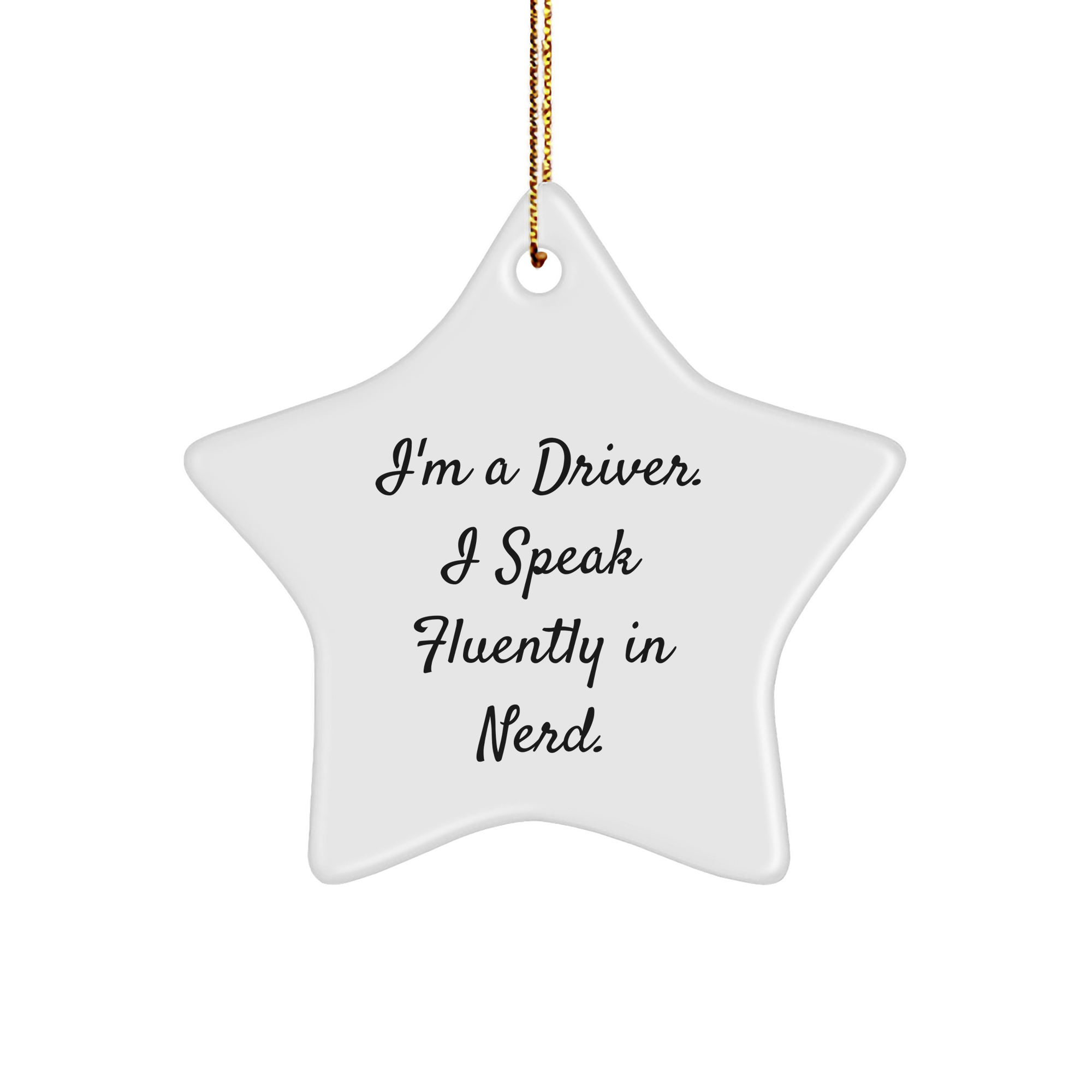 Driver's Delight Star Ornament, Funny Quote Gifts for Men, Unique Christmas Unique Gifts from Friends, 'I'm A Driver. I Speak Fluently In genius.'