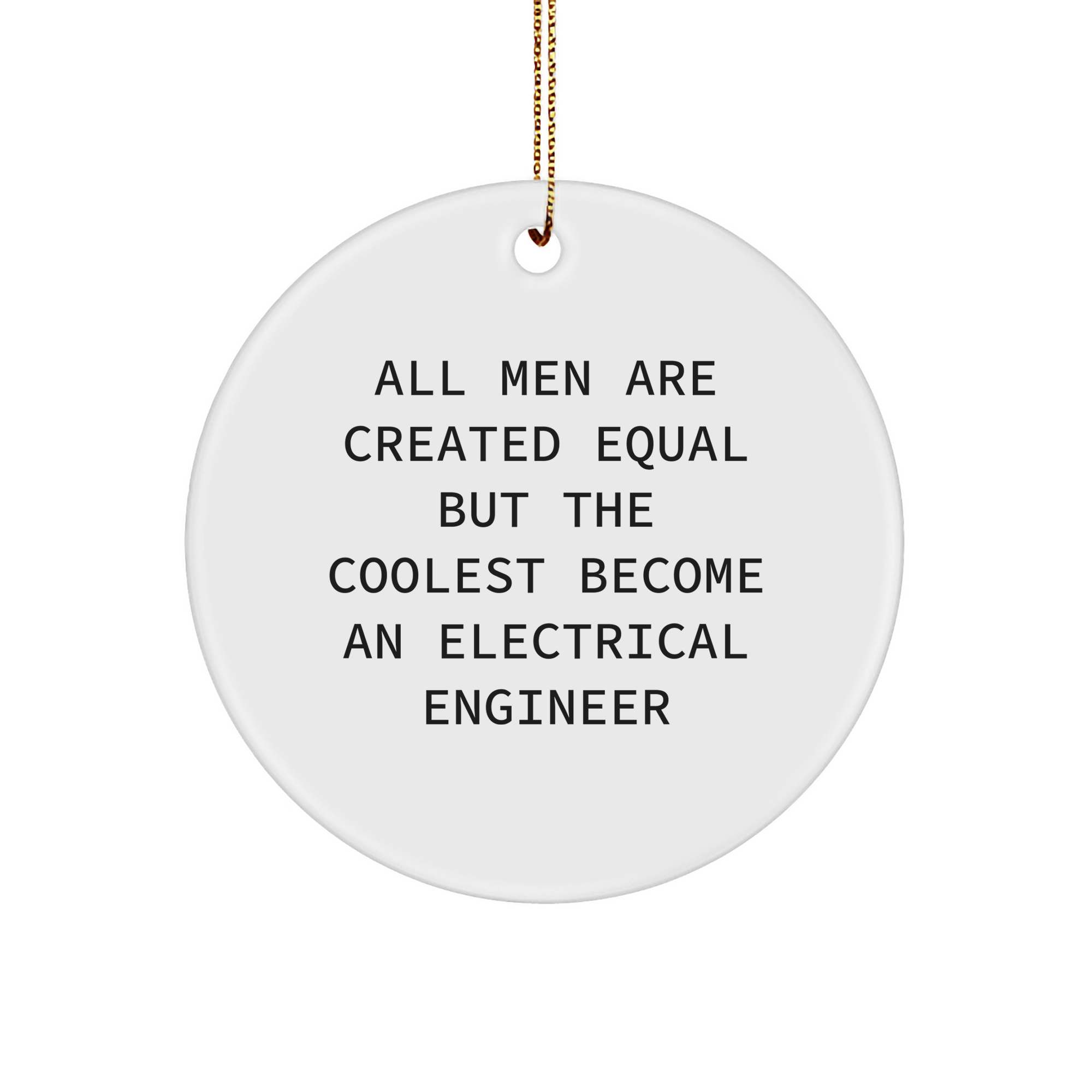 Are you an Electrical Engineer or know someone who is? Look no further for a unique and thoughtful gift! This Circle Ornament is not only a beautiful decoration for your home or office, but it's also a hilarious and inspirational reminder of the quote 'All Men Are Created Equal But The Coolest Become An Electrical Engineer'.