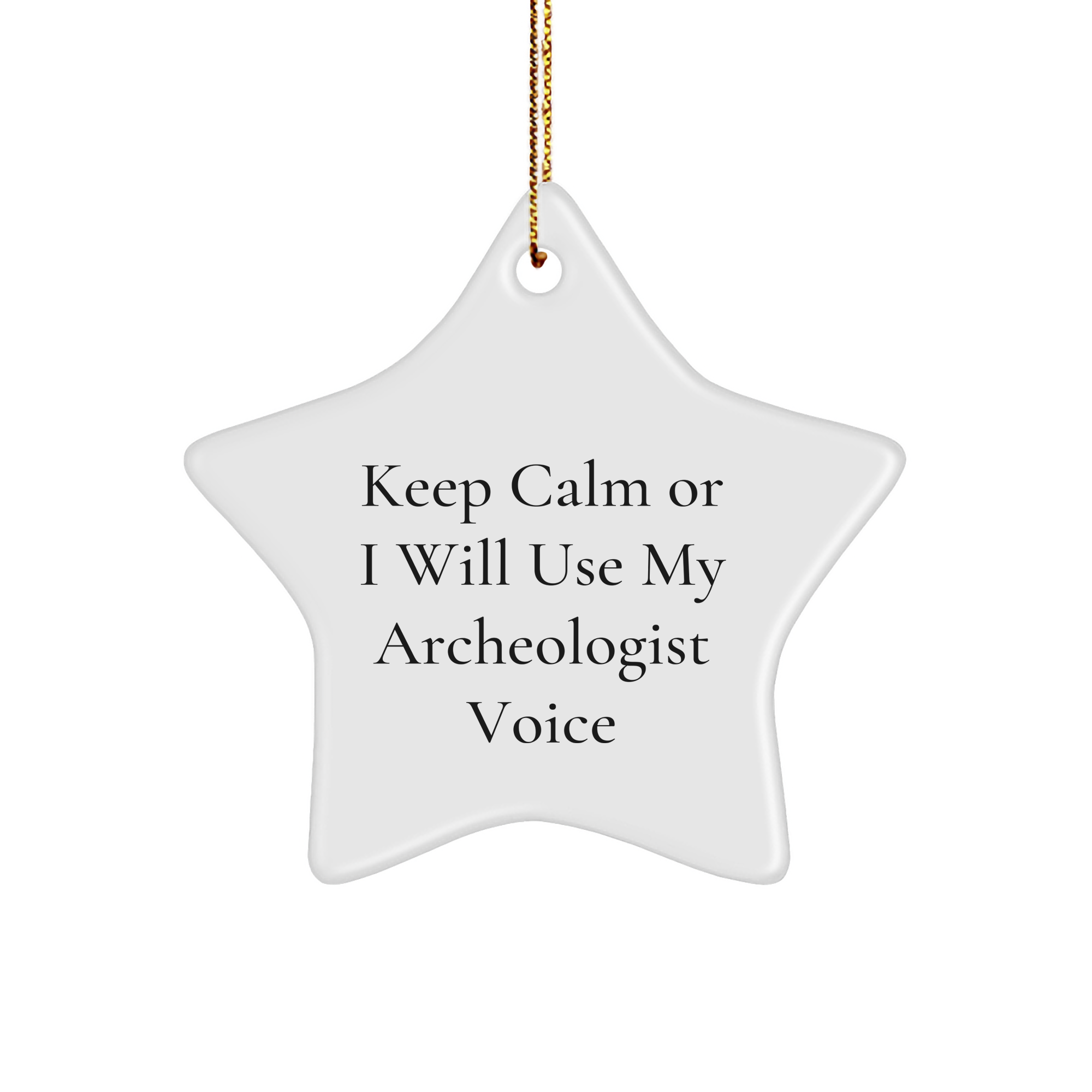 Funny Archeologist Gifts from Friends, Star Ornament for Her, Keep Calm Or I Will Use My Archeologist Voice, Christmas Unique Archeologist Gifts for Her