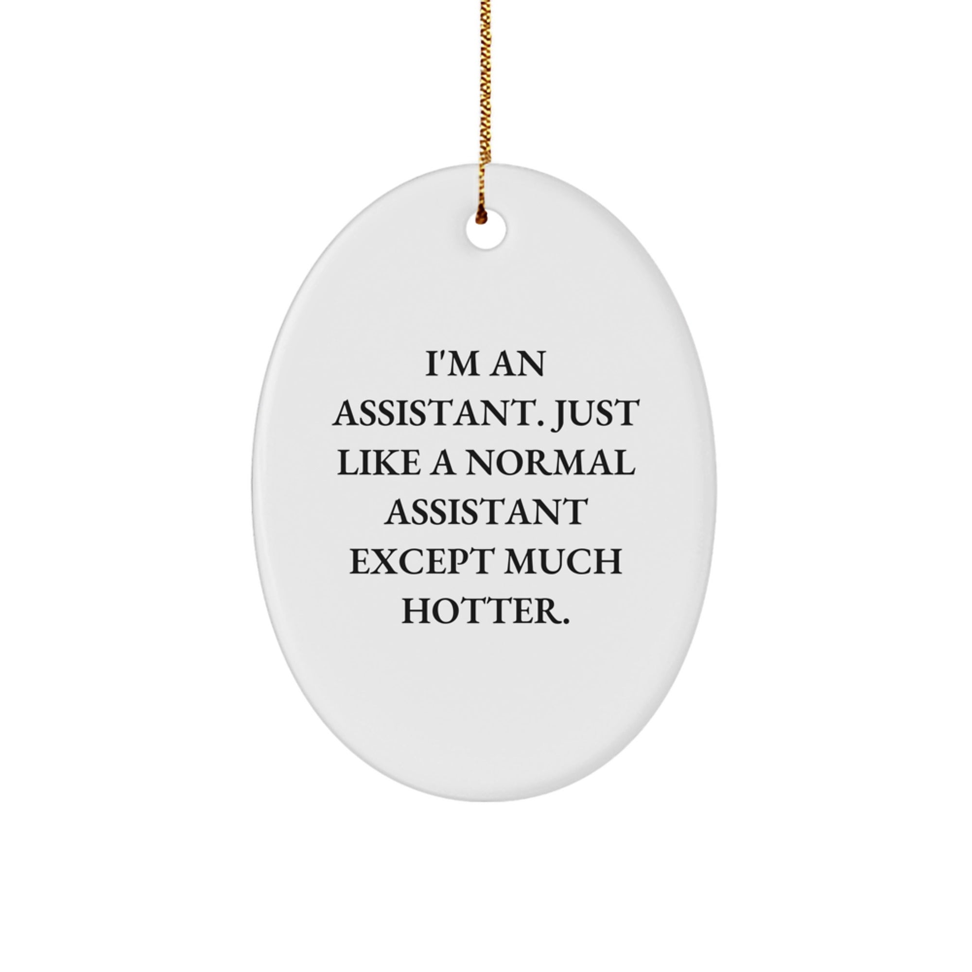 Make your Assistant's day with this funny Oval Ornament, featuring the quote 'I'm An Assistant. Just Like A Normal Assistant Except Much Hotter.' - a great gift for any Assistant, coworker, or family member.