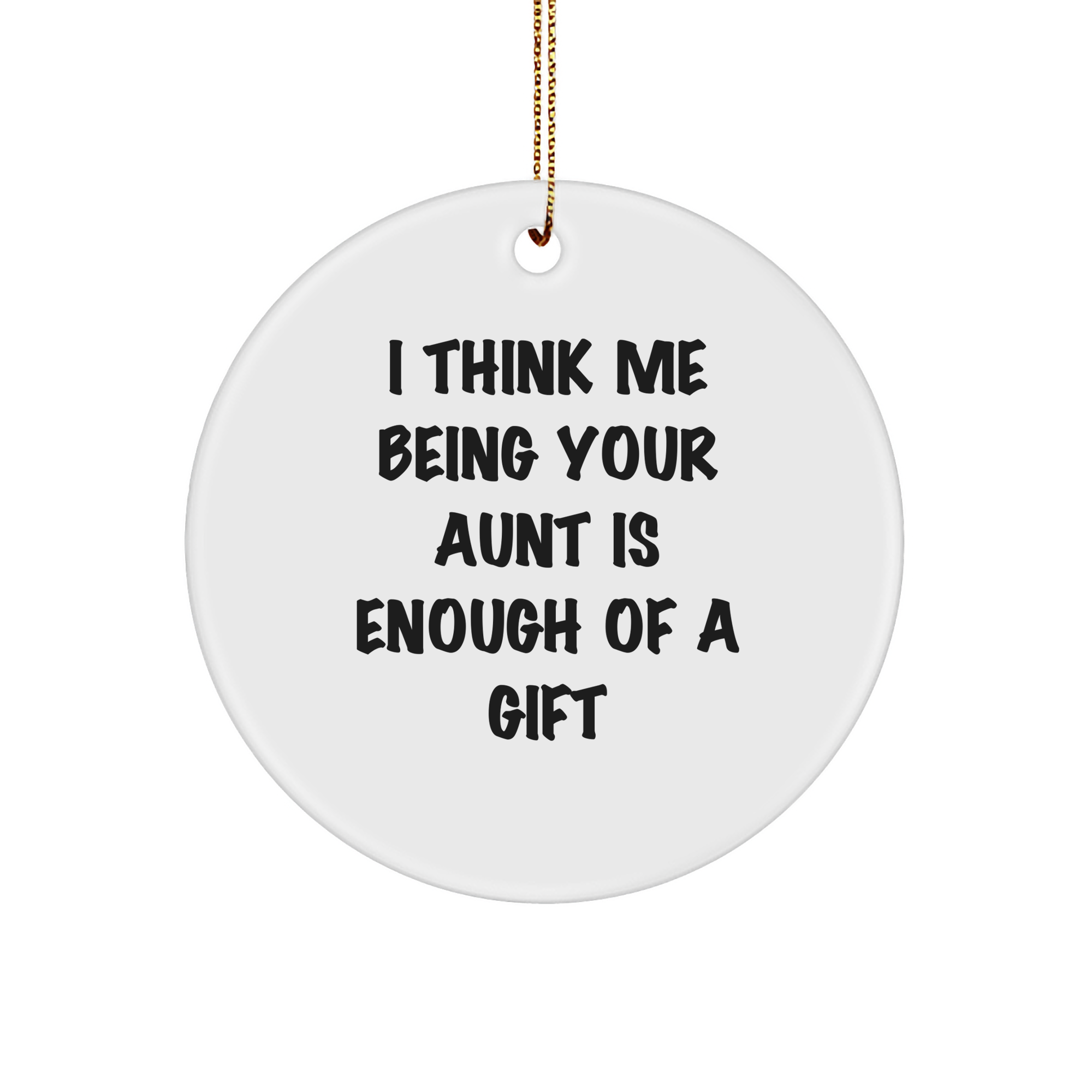 Funny Aunt Gifts from Family - Circle Ornament with 'I Think Me Being Your Aunt Is Enough Of A Gift' Quote for Christmas