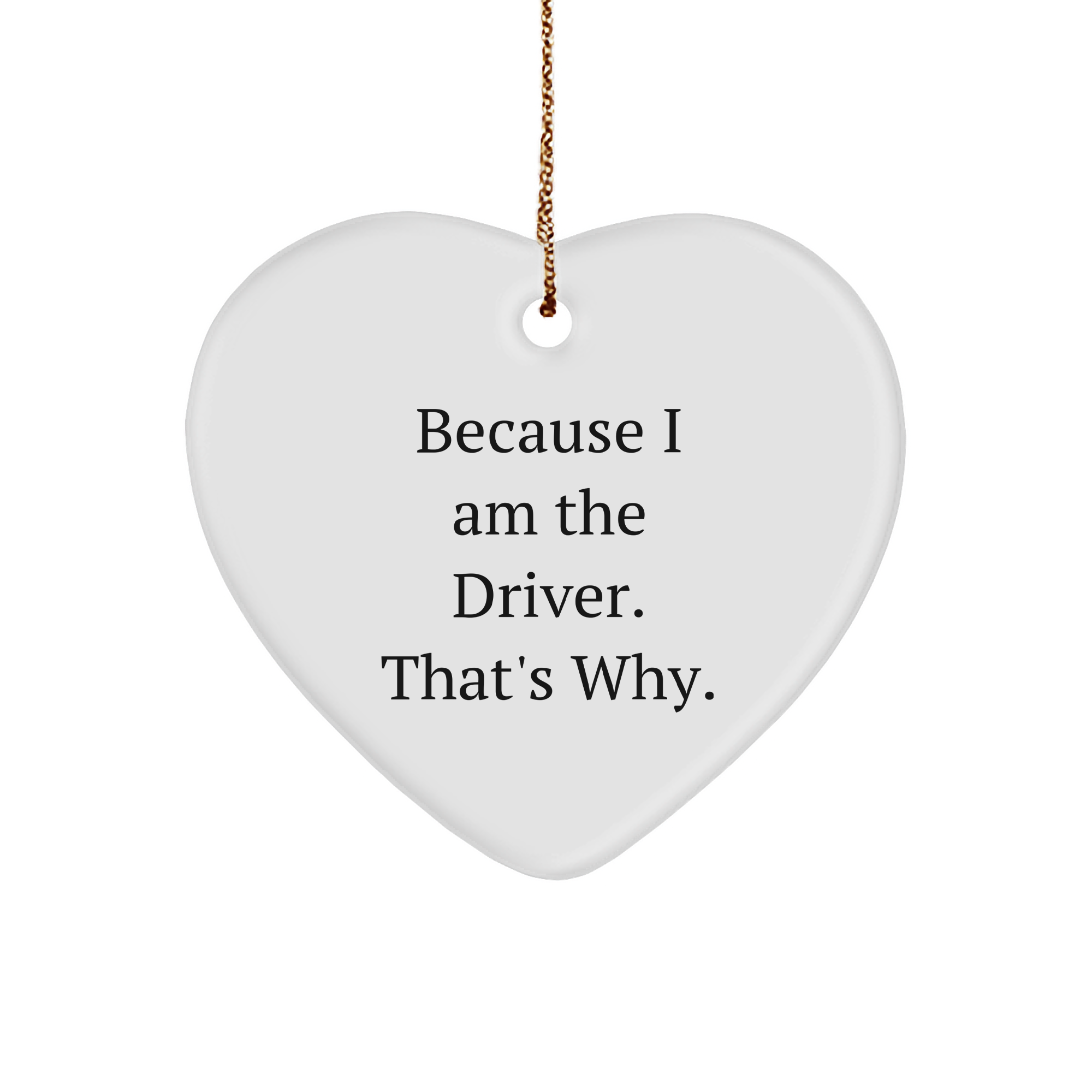 So, if you're looking for a unique gift that's both funny and thoughtful, look no further. Our Because I Am The Driver. That's Why. Heart Ornament is the perfect choice. Don't miss out and make the Driver in your life feel special.
