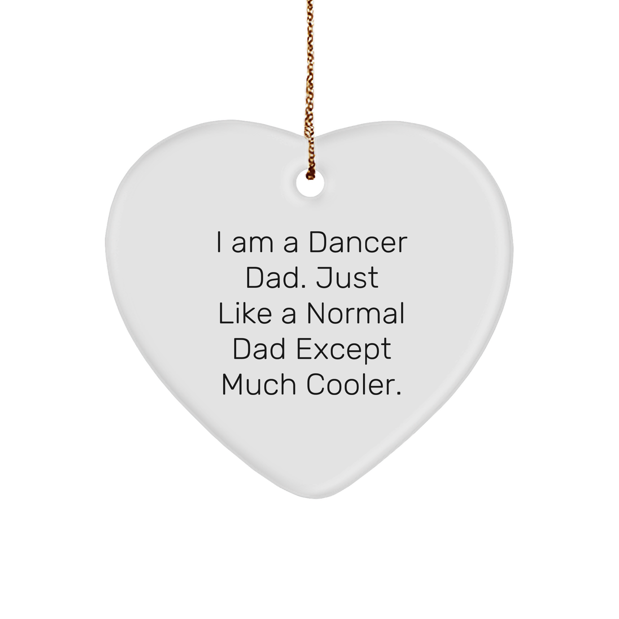 Stand out with our exclusive Dancer Dad Heart Ornament featuring the quote: 'I Am A Dancer Dad. Just Like A Normal Dad Except Much Cooler.' Perfect for any Dancer enthusiast or a thoughtful gift for a Dancer Dad.