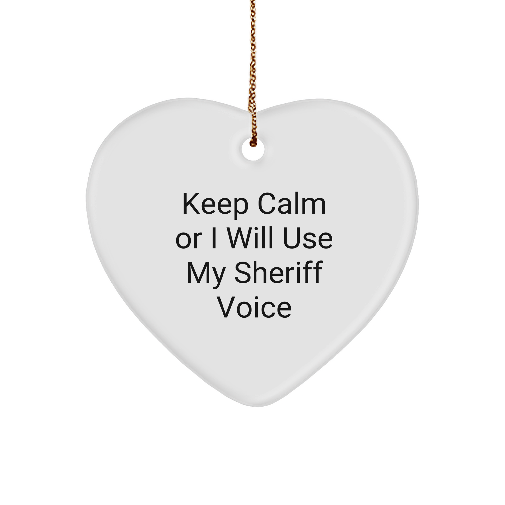 Funny Sheriff Gifts for Men, Women, Coworkers - 'Keep Calm Or I Will Use My Sheriff Voice' Heart Ornament, Christmas Unique Sheriff Sheriff Gifts from