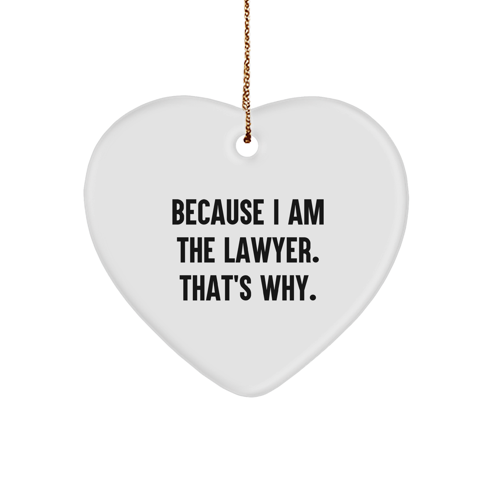 Lawyer's Heartfelt Gift: Because I Am The Lawyer. That's Why., White Heart Ornament, Christmas Unique Gifts from Men to Lawyer Friends and Family