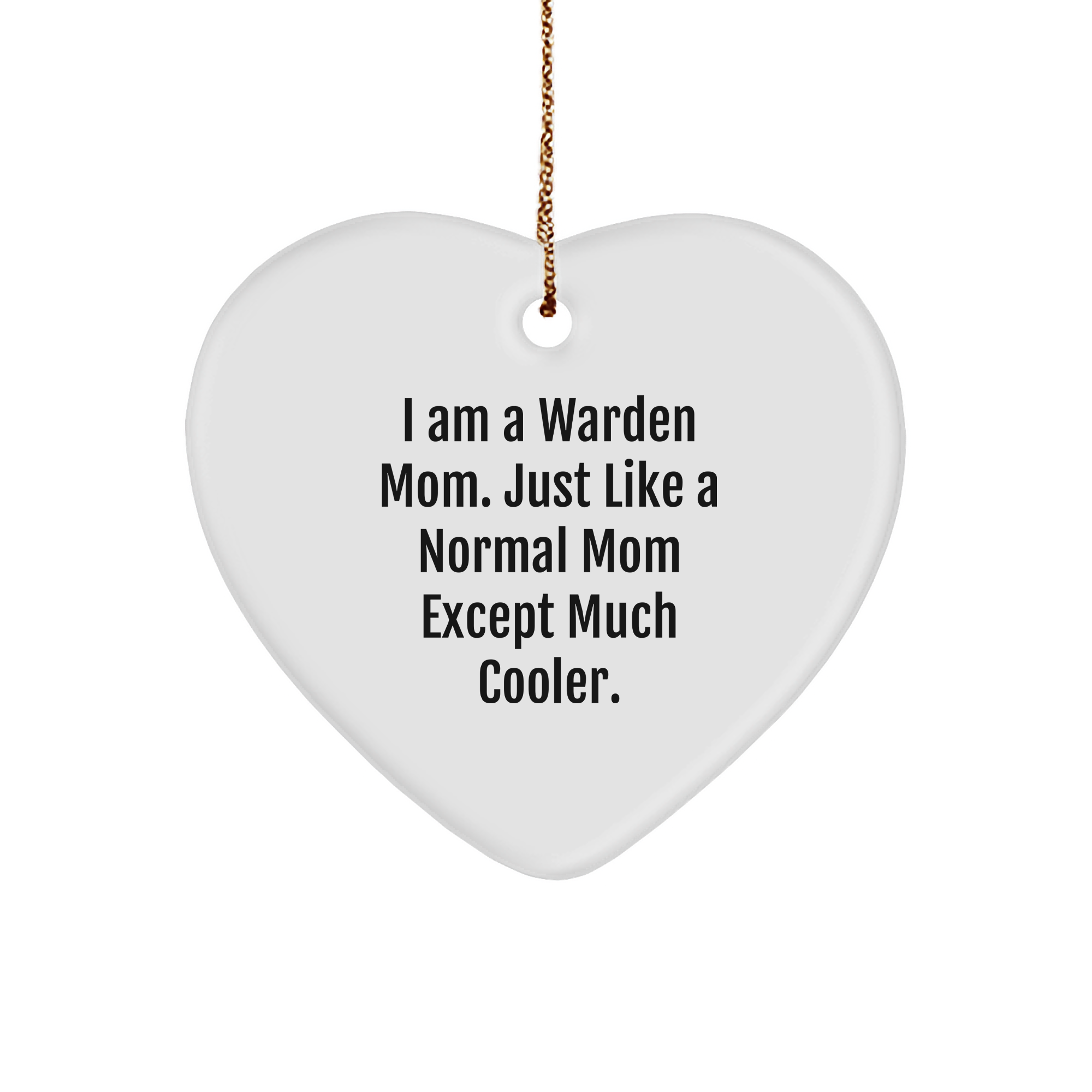 Show your Warden mom spirit with our exclusive Heart Ornament featuring the iconic quote: 'I Am A Warden Mom. Just Like A Normal Mom Except Much Cooler.' Perfect for the special Warden mom in your life.